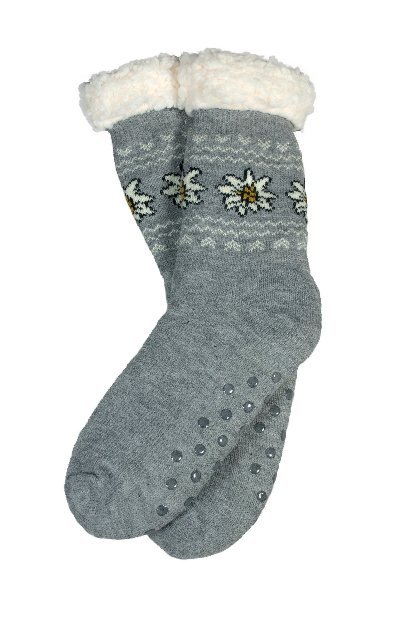 Unsere Hüttensocken, ein Antistress-Accessoire für wahre Wohlfühlmomente. Kein Ausrutschen durch Gumminoppen an der Fußsohle, Super Weich gefüttert und Kuschelig Warm.