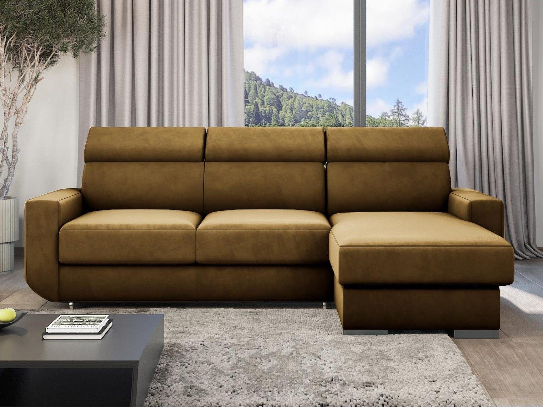 Dieses luxuriöse L-förmige Ecksofa Bonny ist ein wahres Symbol für Eleganz und Komfort in jedem modernen Interieur. Seine Polsterung aus weichem Veloursstoffverleiht ihm einen außergewöhnlichen Ausdruck, und die zusätzliche wasserabweisende Beschichtung macht ihn nicht nur stilvoll, sondern auch praktisch. Dieses Corner Sofa Bonny bietet nicht nur einen bequemen Sitzplatz, sondern auch eine Schlaffunktion, die es zu einer großartigen Lösung für den täglichen Gebrauch und für Gäste macht. Dank des einzigartigen Klappmechanismus kann es leicht in ein bequemes Bett umgewandelt werden, das Ihnen jederzeit einen angenehmen Schlaf bietet. Seine L-form Ecksofa Bonny bietet viel Platz zum Sitzen und Sie können die Seite wählen, auf der Sie die Ottomane platzieren möchten. Es ist nicht nur ein Möbelstück, es ist eine echte Investition in Komfort und Stil Ihres Hauses.