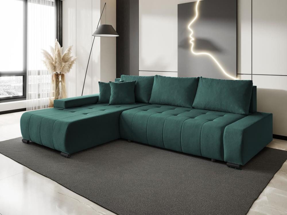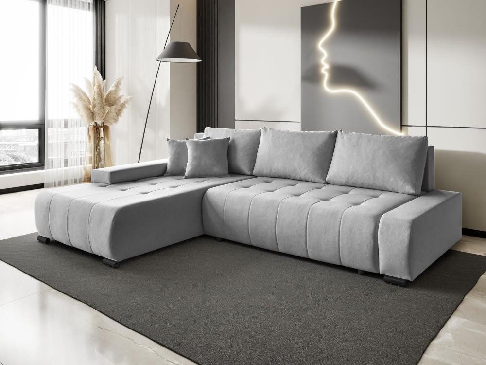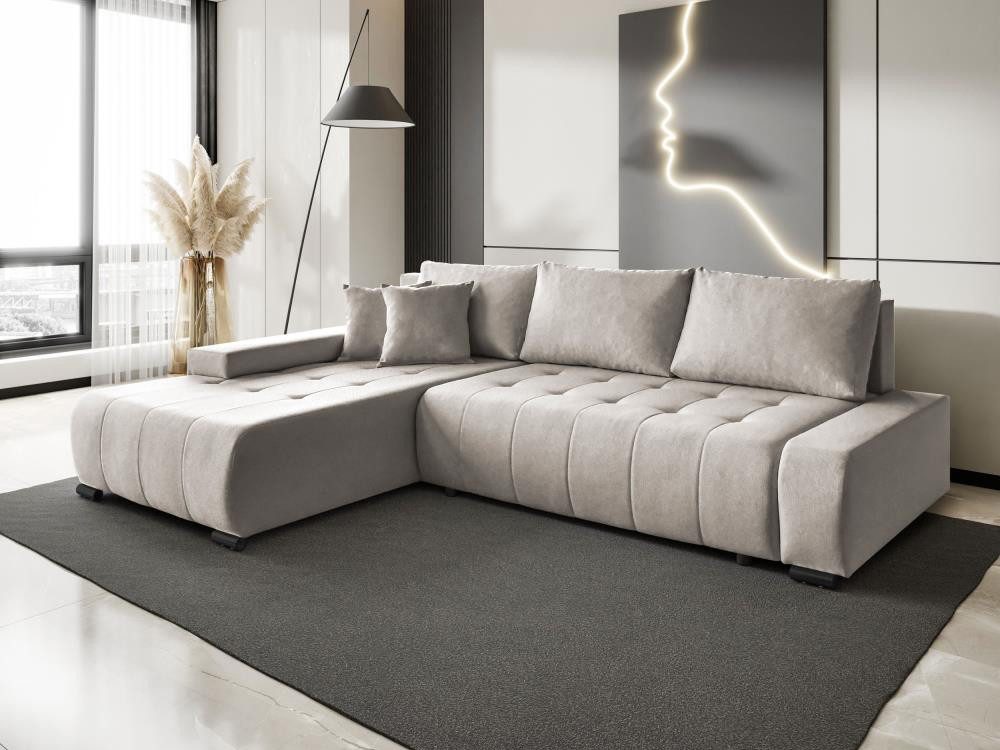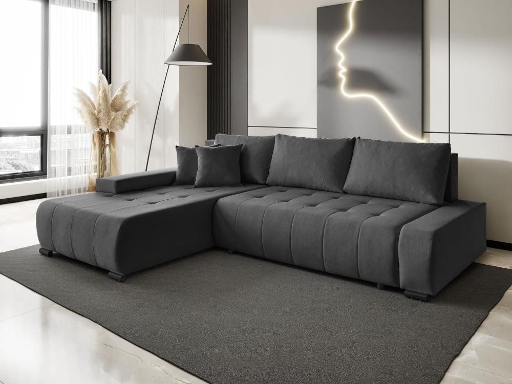 Das Ecksofa Draco wird sich in Häusern von Minimalismus-Liebhabern als nützlich erweisen. Sein Körper und seine Formen sind so einfach wie möglich gehalten. Trotz seiner einfachen Form ist das L-Form Schlafecke Draco äußerst funktionell. Das moderne Ecksofa Draco kann ausgeklappt werden, wodurch ein zusätzlicher Schlafplatz entsteht. Sein großer Vorteil ist das DL-System, das das Ausklappen erleichtert und mit dem Sie das Ecksofa schnell in ein bequemes Bett verwandeln können.