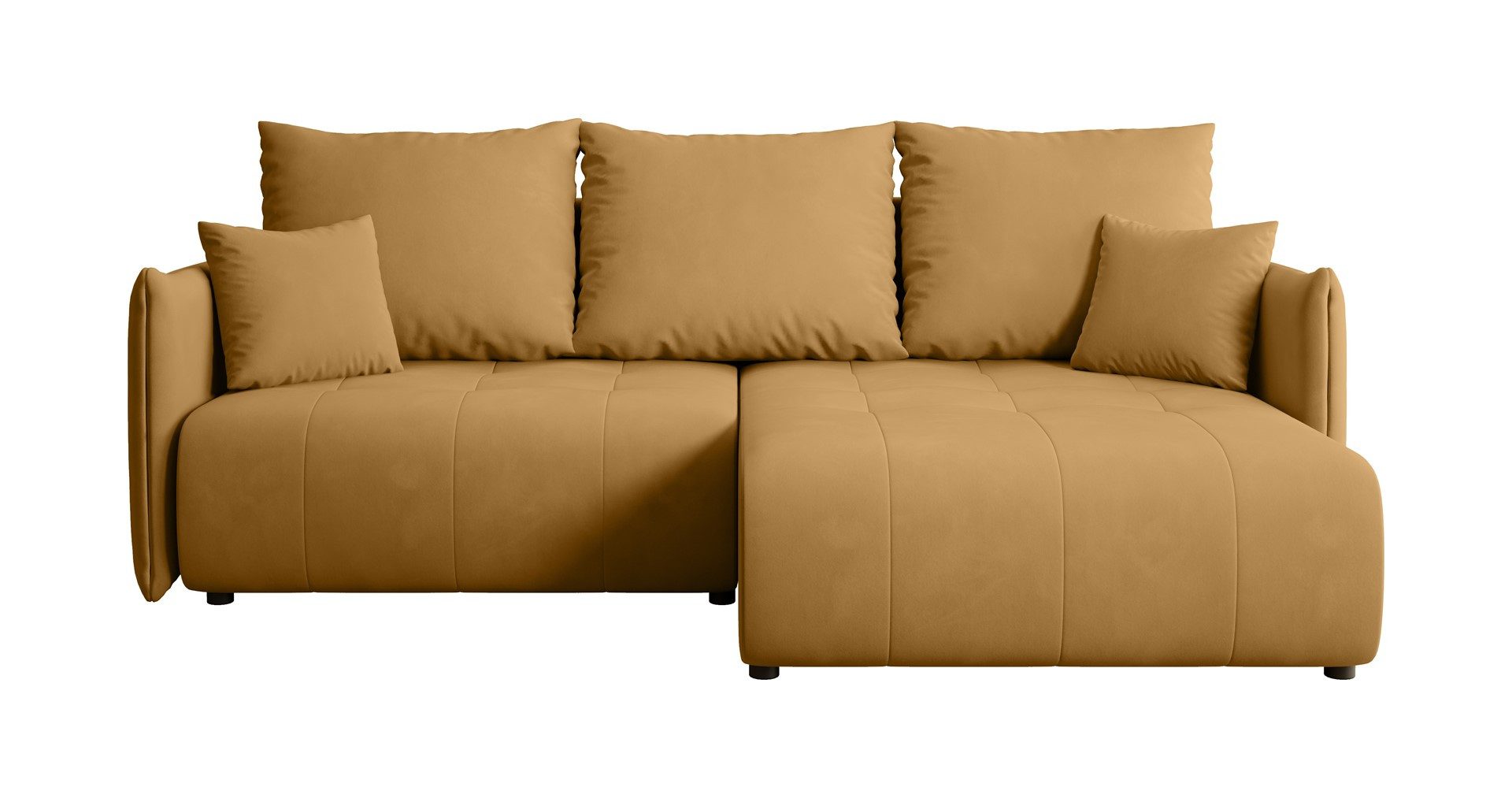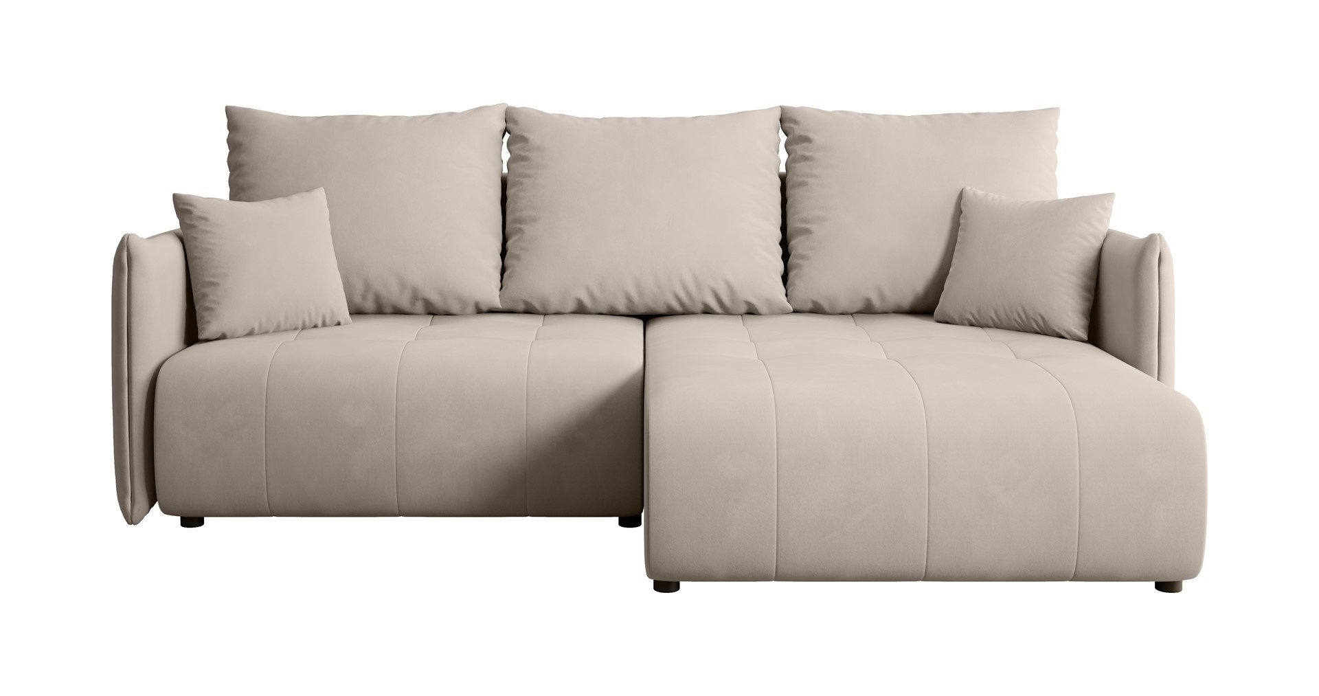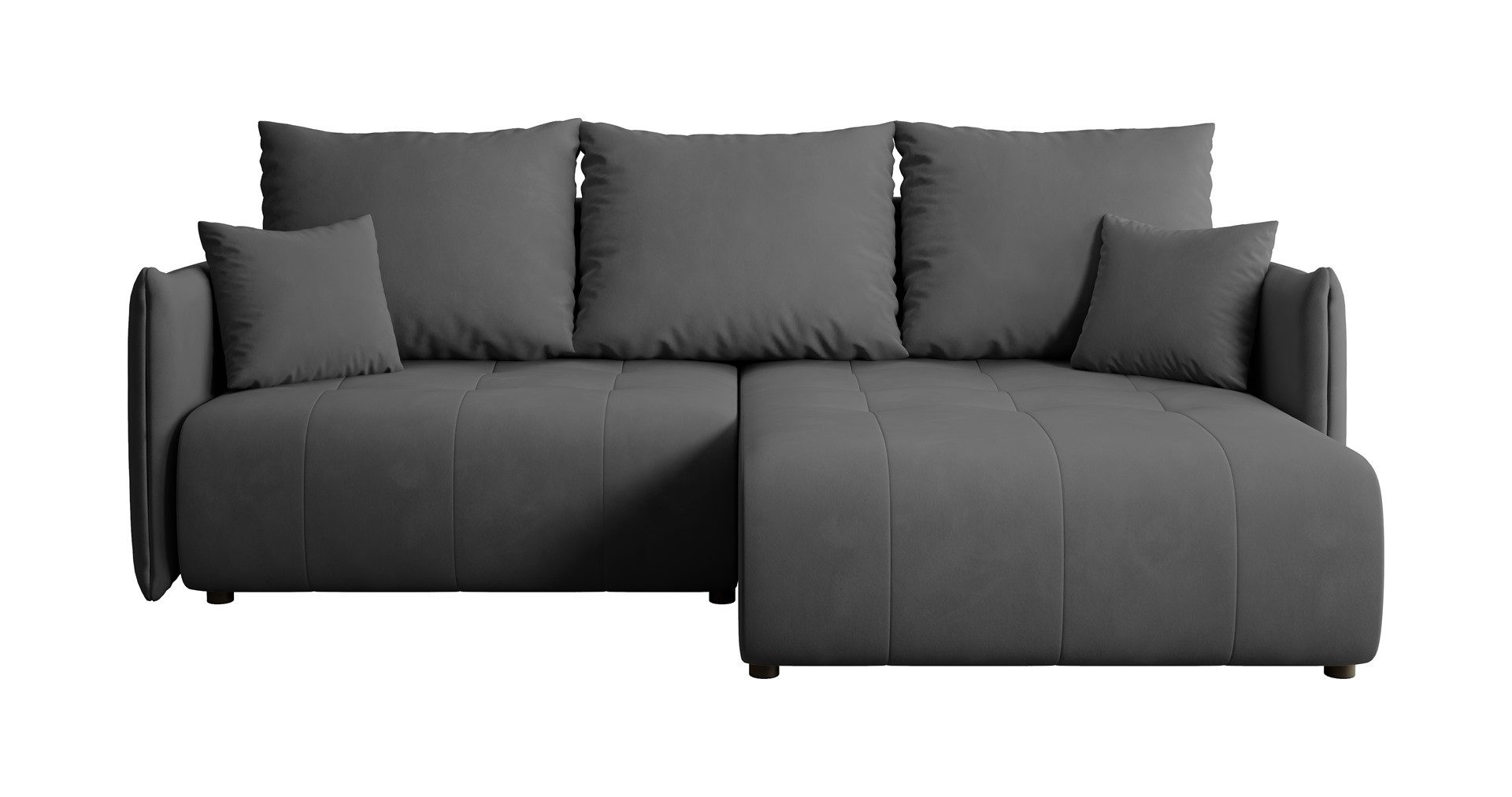 Das Design dieses Ecksofas ist modern und minimalistisch, sodass es sich problemlos an verschiedene Einrichtungsstile anpassen lässt. Klare Linien, sorgfältig verarbeitete Kanten und neutrale Farben wie Grau, Beige oder Graphit verleihen ihm einen eleganten, aber nicht überwältigenden Charakter. Auch in ausdrucksstärkeren Farben erhältlich. Der Sitz aus hochwertigem Schaumstoff sorgt für Komfort sowohl beim täglichen Ausruhen als auch beim Schlafen.