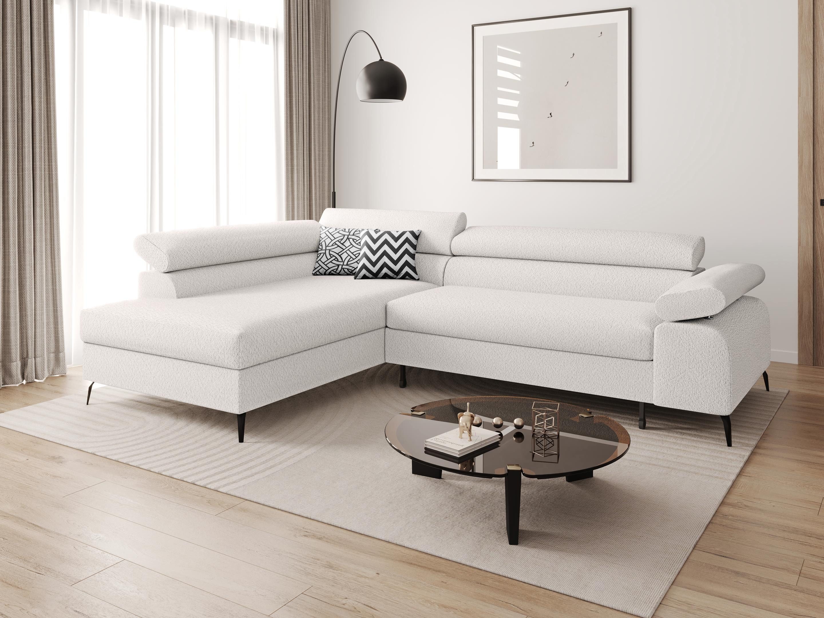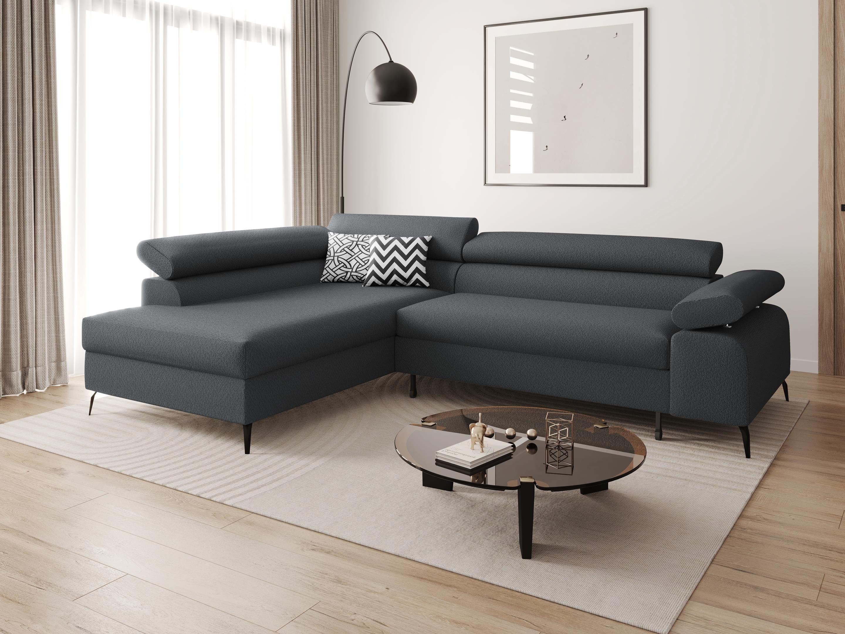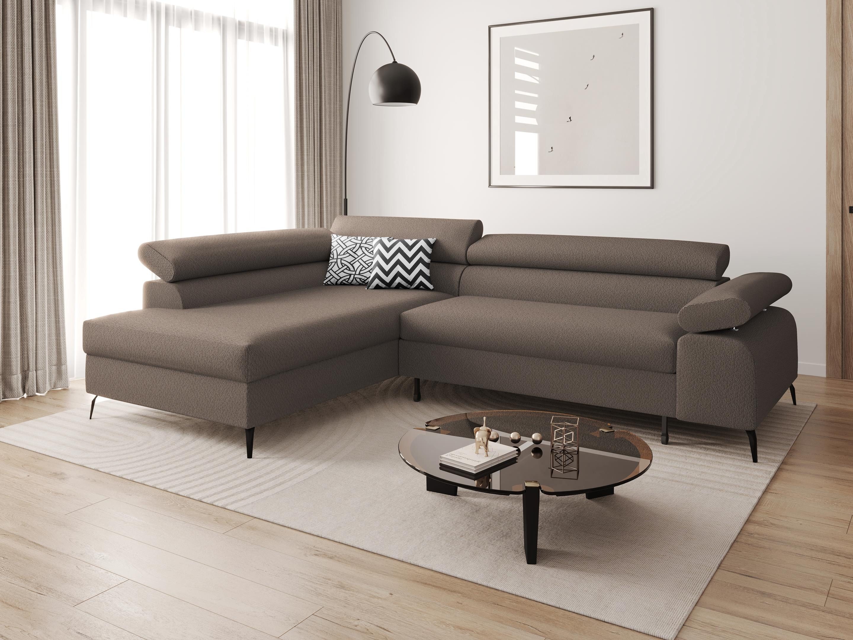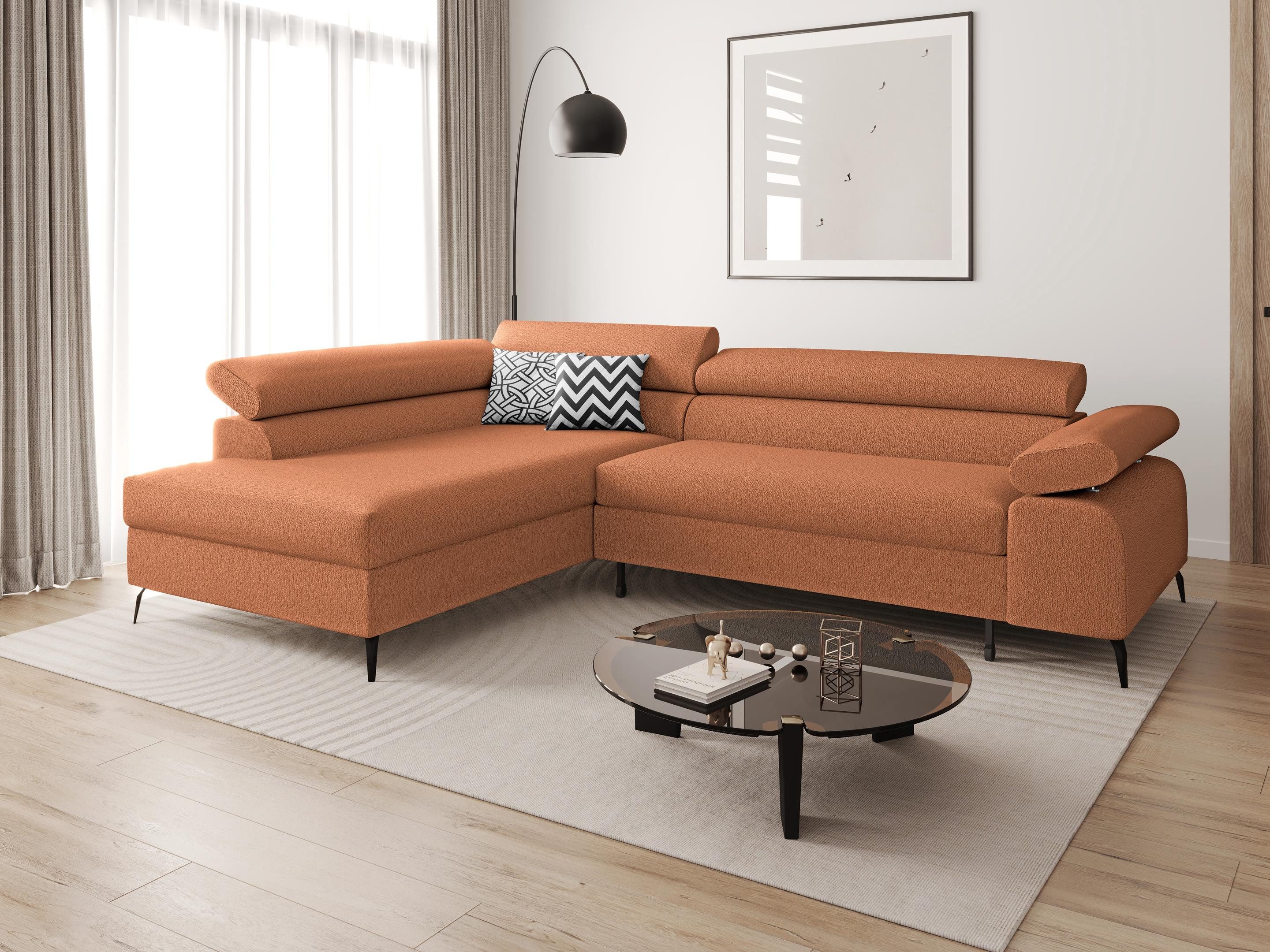 Elegante schwarze Metallfüße setzen moderne Akzente. Bitte wähle vor dem Kauf aus, ob die Ottomane links oder rechts positioniert sein soll, denn das Sofa ist nicht wendbar. Damit passt MELLOW optimal in Dein Raumkonzept.