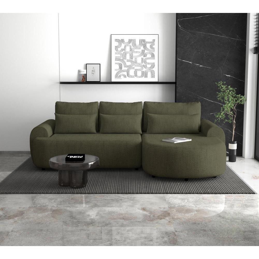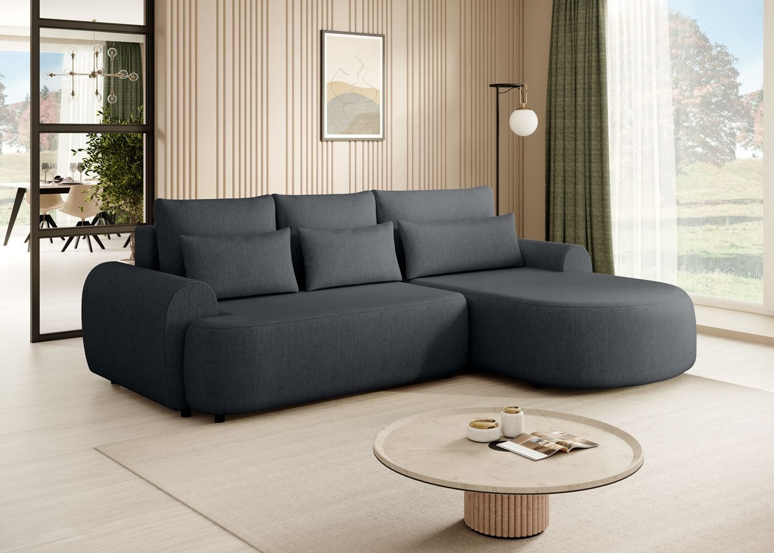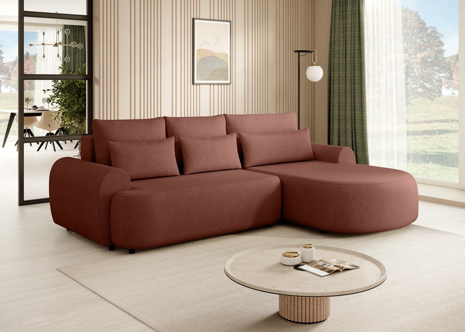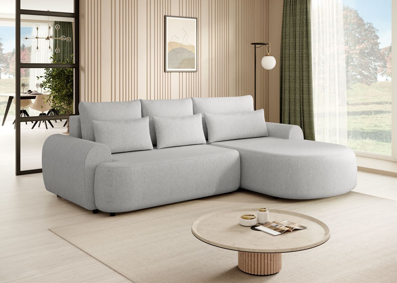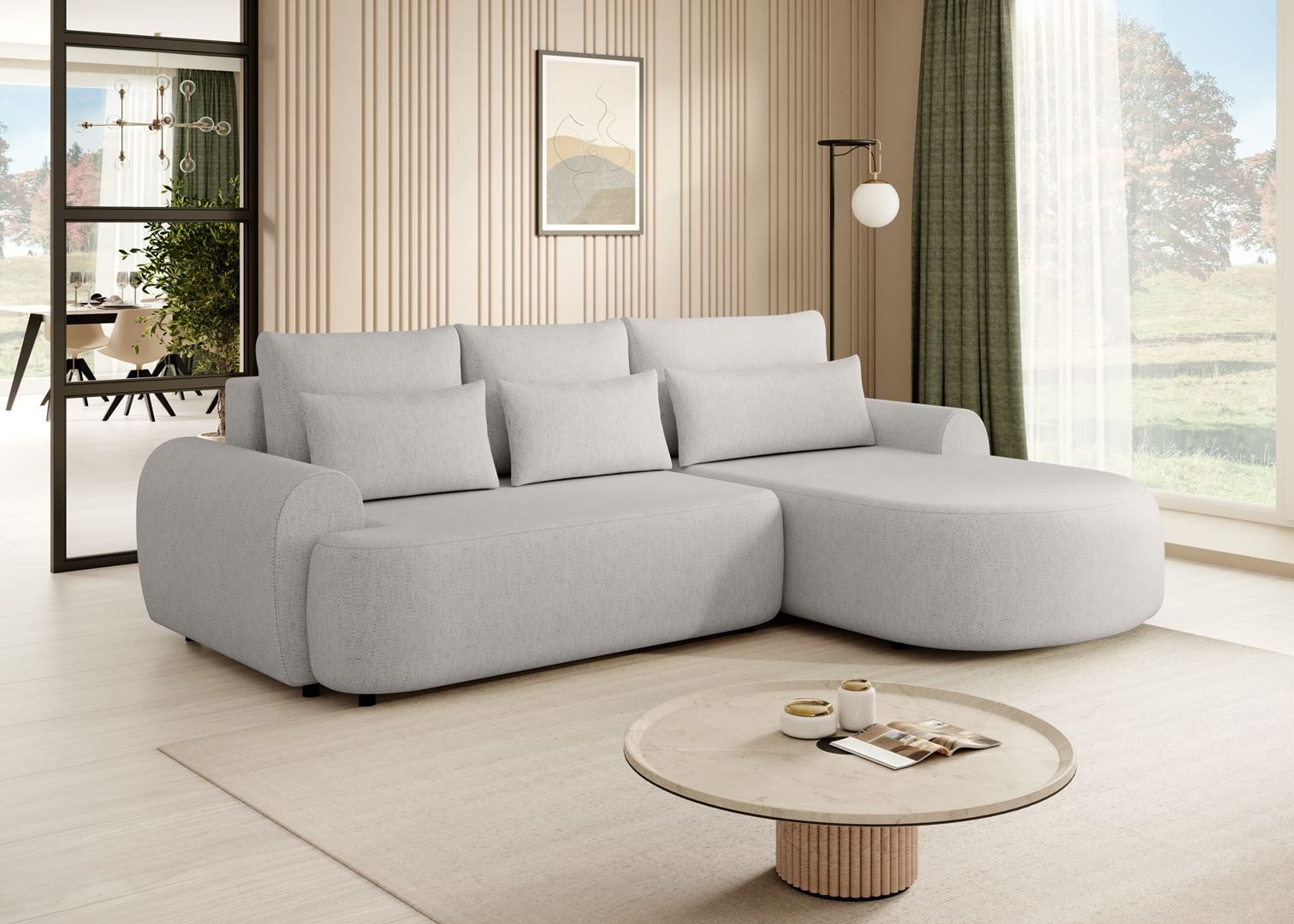 Das Ecksofa mit Schlaffunktion Olivio gepolsterte mit Boucle-Stoff ist ein wahres Kunstwerk in der Möbelwelt. Sein elegantes Design und außergewöhnlicher Komfort machen es zu einem unverzichtbaren Element in jedem Wohnzimmer. Modest-Stoff – zeichnet sich durch sein modernes Design aus. Es handelt sich um einen strapazierfähigen Stoff, der unter anderem für die Polsterung von Stühlen, Sofas und Hockern verwendet wird. Seine hohe Widerstandsfähigkeit bedeutet, dass auch bei häufigem Gebrauch keine mechanischen Schäden in Form von Abrieb oder Löchern entstehen. Trotz seiner Dicke fühlt es sich angenehm an und ist dehnungsbeständig. Er ist formschön und in vielen Farben erhältlich. Er besteht zu 100% aus PES, einem synthetischen Material Charakter. Der Sofasitz ist auf Komfort ausgelegt und verwendet Wellenfedern, die sich perfekt an Ihre Körperform anpassen und hervorragende Unterstützung und Entspannung bieten. Ob Sie Zeit damit verbringen, Ihr Lieblingsbuch zu lesen, einen Film zu sehen oder mit Freunden zu plaudern, dieser Sitz bietet Ihnen außergewöhnlichen Komfort. Dieses Ecksofa beige Olivio hat auch eine Schlaffunktion mit MOS-Öffnungsfunktion, was bedeutet, dass es leicht in ein bequemes Bett mit Liegefläche 120 x 208 cm umgewandelt werden kann. Um seine Praktikabilität noch weiter zu erhöhen, ist dieses Ecksofa mit Bettkasten unter dem Sitz ausgestattet, in dem Sie Bettdecken, Kissen und Bettwäsche aufbewahren können. Dieses mit Boucle-Stoff gepolsterte Ecksofa aus Boucle ist eine Wahl für diejenigen, die sowohl Stil als auch Komfort in ihrem Interieur schätzen.