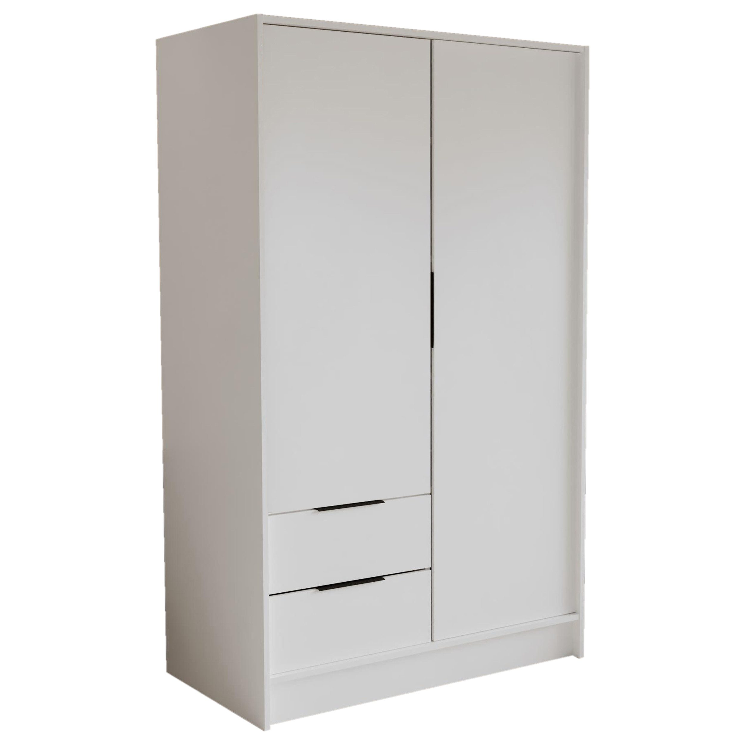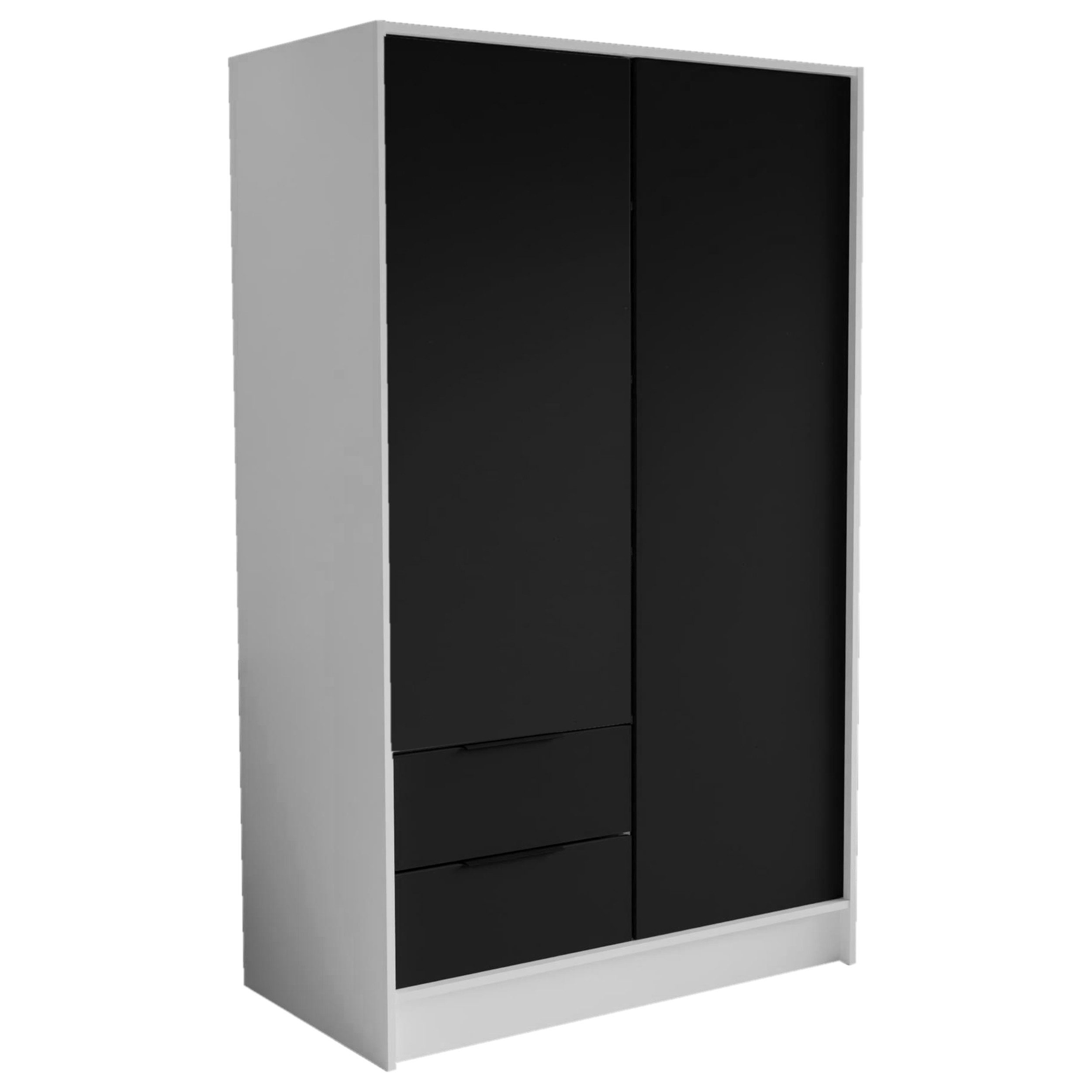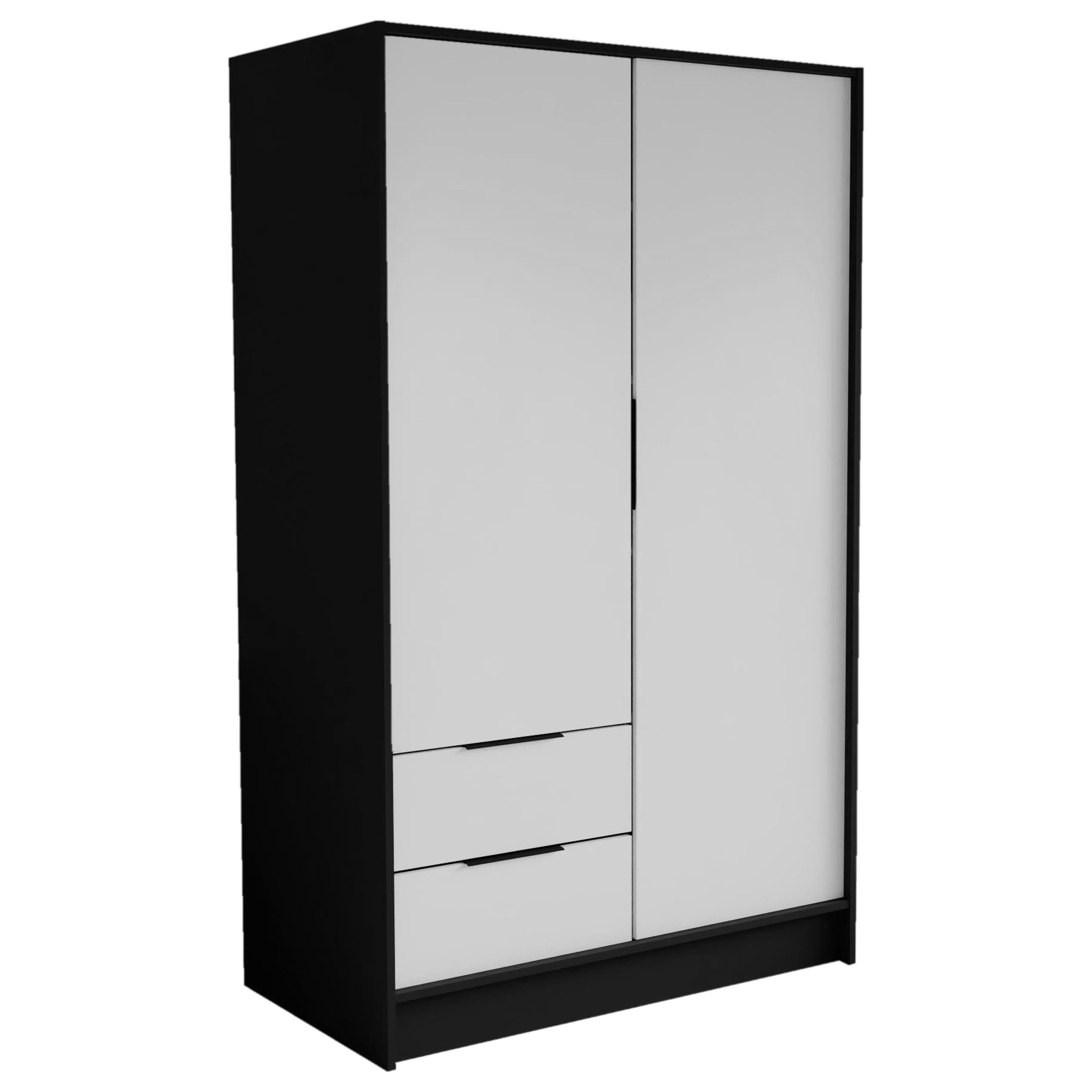 Intelligentes Innenleben: Das Innere des Kleiderschranks wurde sorgfältig entworfen, um eine Vielzahl von Aufbewahrungsbedürfnissen zu erfüllen. Zwei geräumige Schubladen, funktionale Einlegeböden und eine praktische Kleiderstange ermöglichen es Ihnen, Ihre Kleidung und Accessoires geschickt zu organisieren und aufzubewahren.