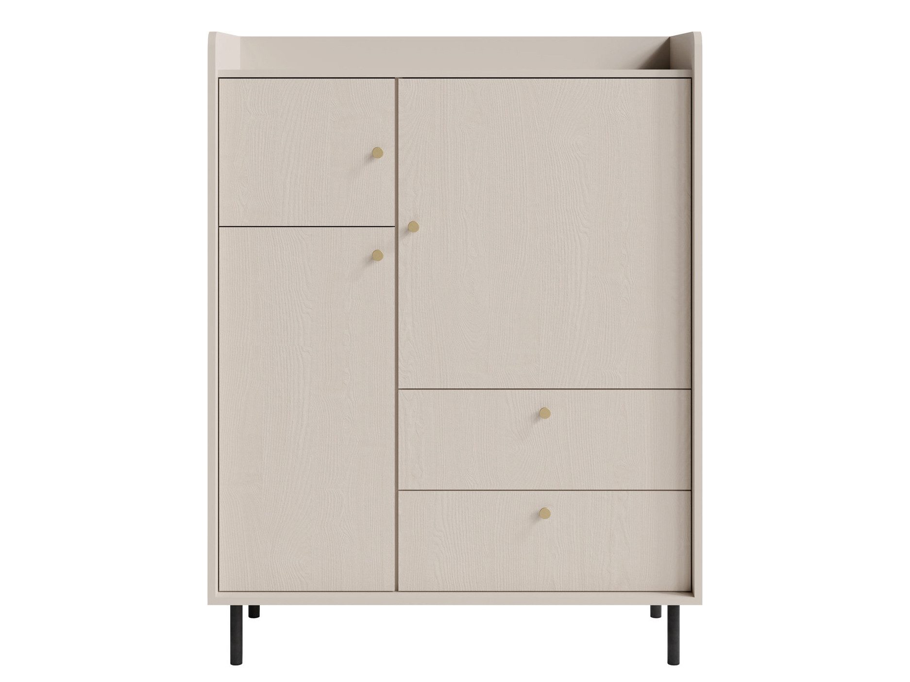 Die Kommode Gloria ist ein elegantes Möbelstück, das Stil und Funktionalität perfekt vereint. Ihr sandbeiger Farbton mit subtiler Holzstruktur schafft eine warme und einladende Atmosphäre in jedem Raum.