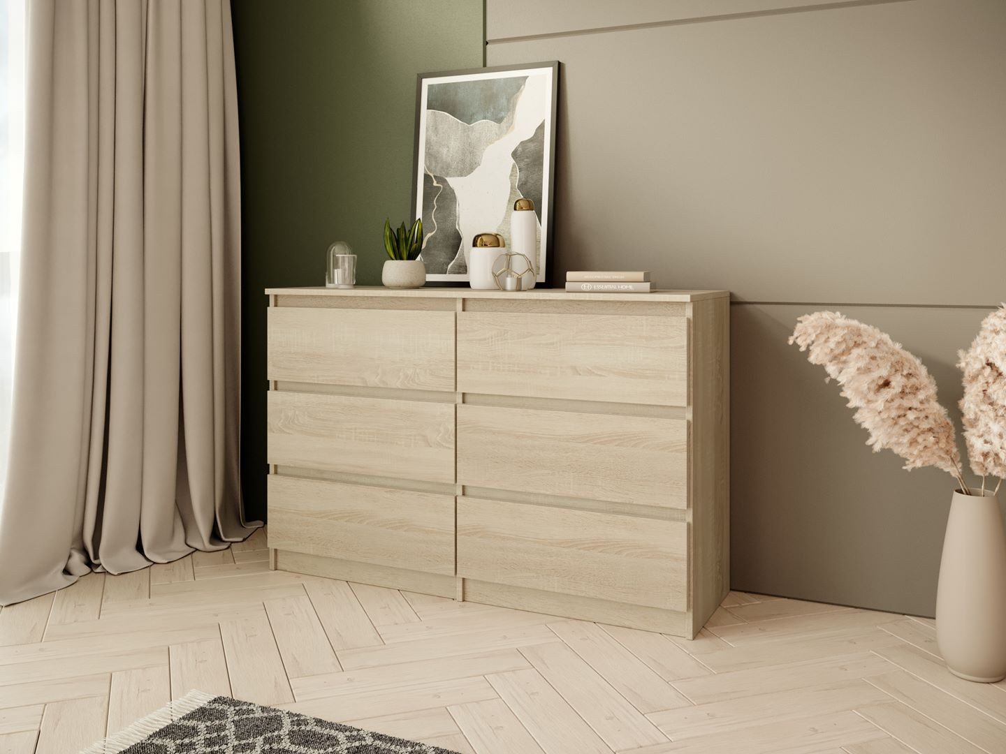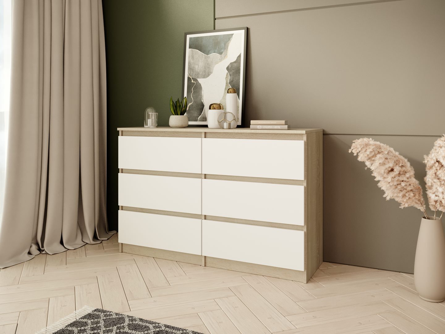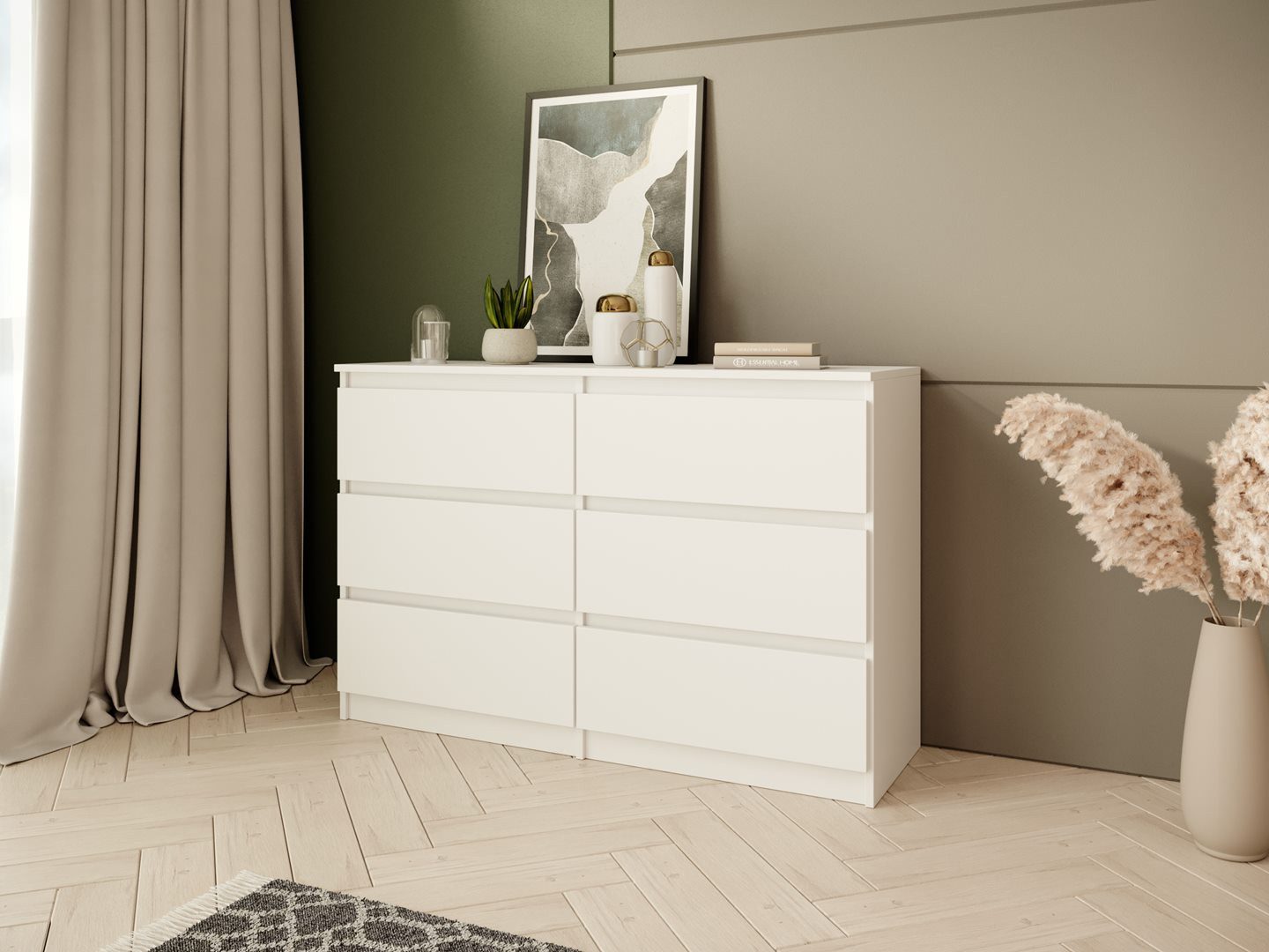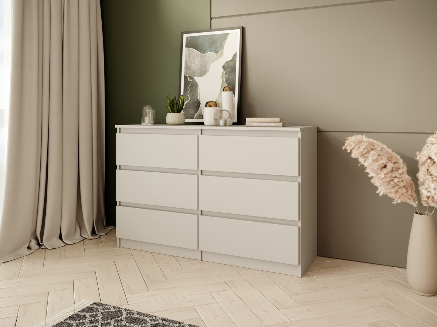 Die Kommode LOOK durch ihr leichtes und minimalistisches Design, das sich harmonisch in moderne sowie klassische Einrichtungen einfügt. Ausgestattet mit sechs praktischen Schubladen, bietet sie ausreichend Stauraum für Kleidung, Wäsche oder persönliche Gegenstände.