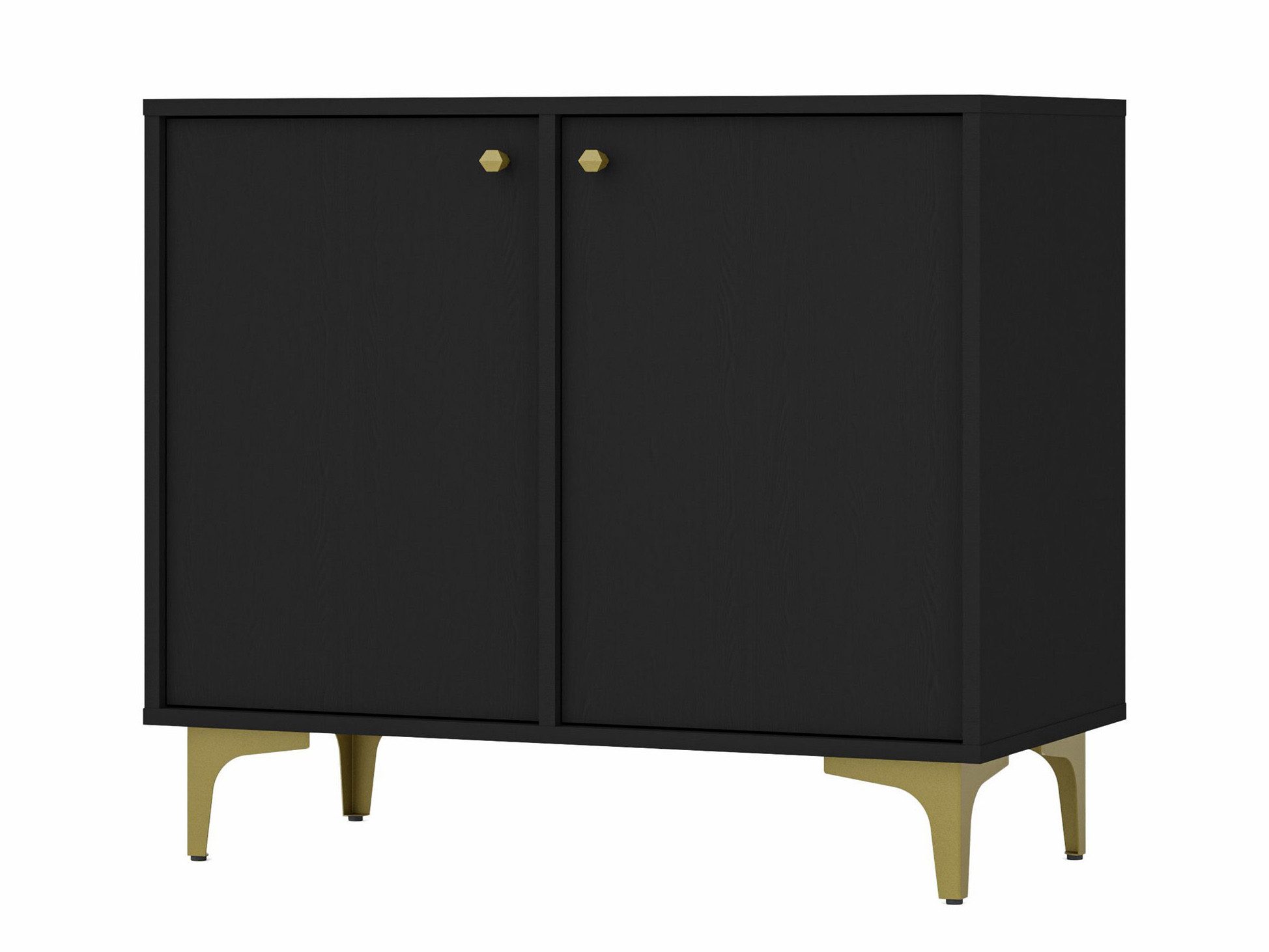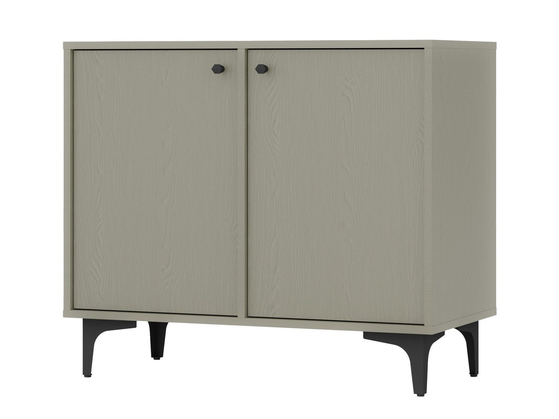Die moderne Kommode TOKYO mit zwei Türen ist ein elegantes Möbelstück mit schlichtem, minimalistischem Design. Der äußere Teil der Kommode ist symmetrisch, mit glatten Türfronten. Hinter der Tür befinden sich Regale, die viel Stauraum bieten. Der Innenraum der Kommode ist funktional und ideal für die Aufbewahrung verschiedener Gegenstände, von Büchern über Dekorationen bis hin zu Geschirr.