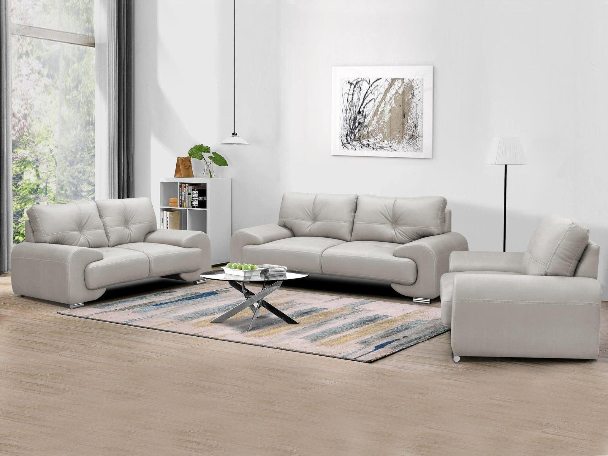 Dieser elegante 3+2+1 Polstergarnitur Maxime lux ist ideal, um sich nach einem langen Tag auszuruhen. Sein einzigartiges Design verbindet Modernität mit Komfort und schafft den perfekten Ort zum Entspannen. Der Sofagarnitur Maxime lux ist mit hochwertigem Kunstleder gepolstert, das nicht nur luxuriös aussieht, sondern auch leicht zu reinigen ist, was ihn ideal für den täglichen Gebrauch macht. Einer der größten Vorteile dieses Stuhls ist seine bequeme Sitzfläche auf einer Wellenfeder, die eine hervorragende Unterstützung für den gesamten Körper bietet. Kombiniert mit der außergewöhnlichen Weichheit des Kunstleders, ist der Sitz dieses Sessels ein Paradies für Liebhaber der Entspannung. Die verchromten Beine des Sessels verleihen ihm nicht nur ein modernes Aussehen, sondern sorgen auch für Stabilität und Haltbarkeit.