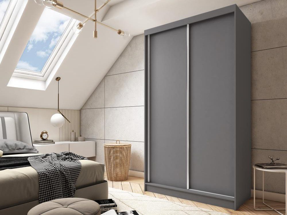 Der Kleiderschrank MARIO mit Schiebetüren , ohne Spiegel und ohne Griffe zeichnet sich durch sein modernes und minimalistisches Design aus. Seine glatten, einheitlichen Fronten schaffen eine stimmige, elegante Oberfläche, die sich perfekt in die Ästhetik moderner Innenräume einfügt. Dank der Schiebetüren ist der Kleiderschrank funktional und eignet sich perfekt für kleinere Räume, in denen es auf Platzersparnis ankommt.