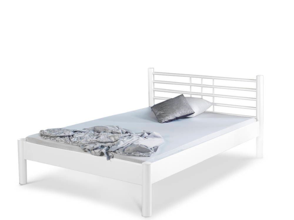 Das Metallbett Mia hat ein klassisches Kopfteil mit mehreren Längs- und Querstreben ohne Fußteil.