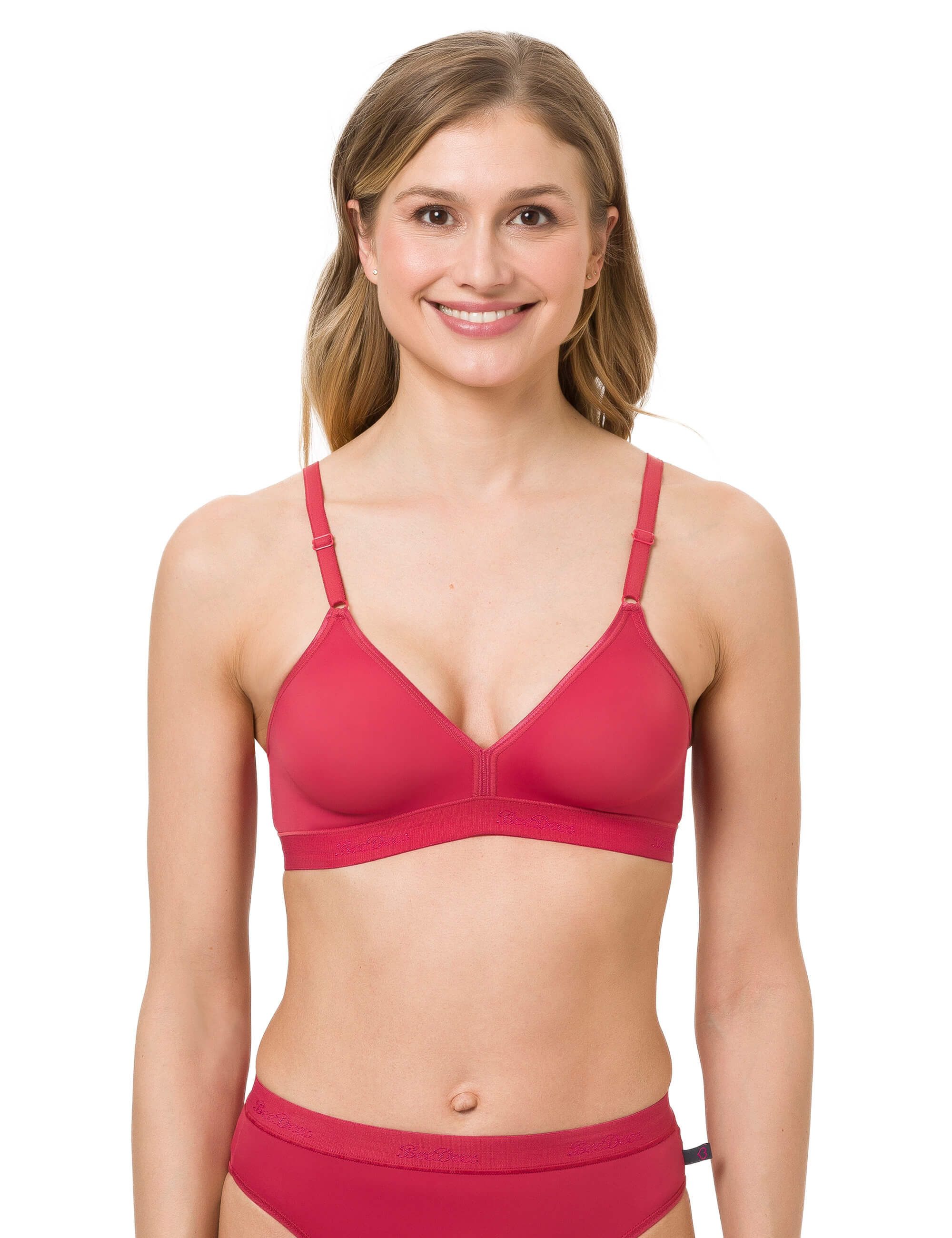 Da ungefütterte bügellose BHs im Moment eher in der Minderheit sind und dieser gute Qualität in frischem, sportlich-bequemen Design bietet, ist dies eine gute Wahl, besonders, weil er hier günstig angeboten wird. Ich trage diese BHs seit sieben Jahren (der erste ist inzwischen verschlissen, aber das ist nur fair) und habe inzwischen zwei bis drei Stück nachgekauft. Wenn ich sportlich sage, muss ich dazu sagen, es ist natürlich kein Sport-BH, aber er ist durch den Stoff luftig und kühl und trocknet bei leichtem Schwitzen schnell wieder. Er ist auch schnell wieder trocken, wenn man ihn zwischen zwei Wäschen mal von Hand wäscht. Er ist elastisch und gibt trotzdem Halt, insofern, dass er die Brust zumindest leicht anheben kann (Mehr kann man von ihm nicht erwarten.) Der Stoff ist wie gesagt glatt, das Unterband ist auf der Innenseite aber kuschlig weich beschichtet. Er ist bei 40 Grad waschbar und darf nicht in den Trockner. Material ist 85 % Poliamid und 15 % Elastan.