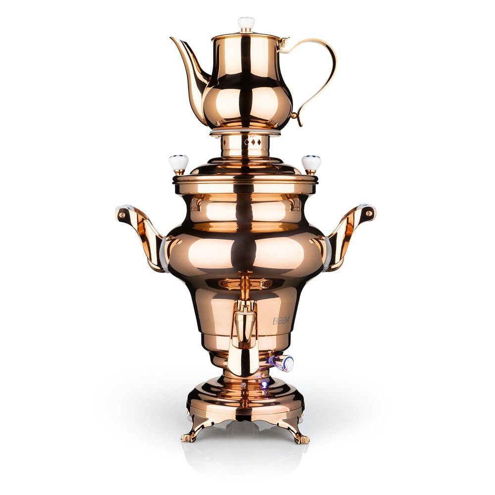 Der Samowar REBECCA+ ROSÉ zieht alle Blicke auf sich. Das elegante Edelstahl-Design in zartem Rosé geht Hand in Hand mit Funktionalität, die Sie und Ihre Gäste begeistern wird. Bei einem Fassungsvermögen von 5 Litern darf es auch gern eine größere Anzahl Gruppe sein. Zudem lässt er sich leicht und hygienisch bedienen: Der inkludierte Einhand-Dispenser sorgt für eine komfortable Anwendung.