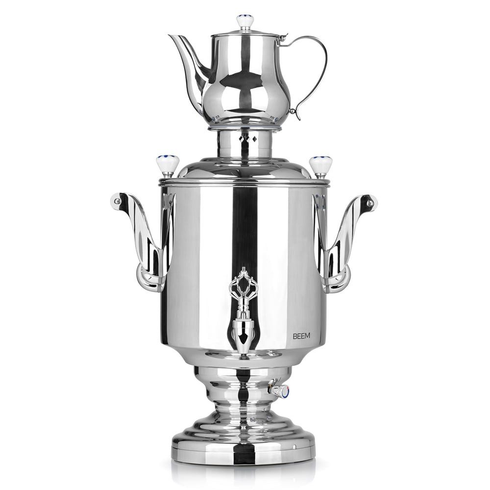 Ausstattung | 1x Wasserbehälter mit Sockel, 1x Deckel Wasserbehälter, 1x Teekanne, 1x Teesieb |