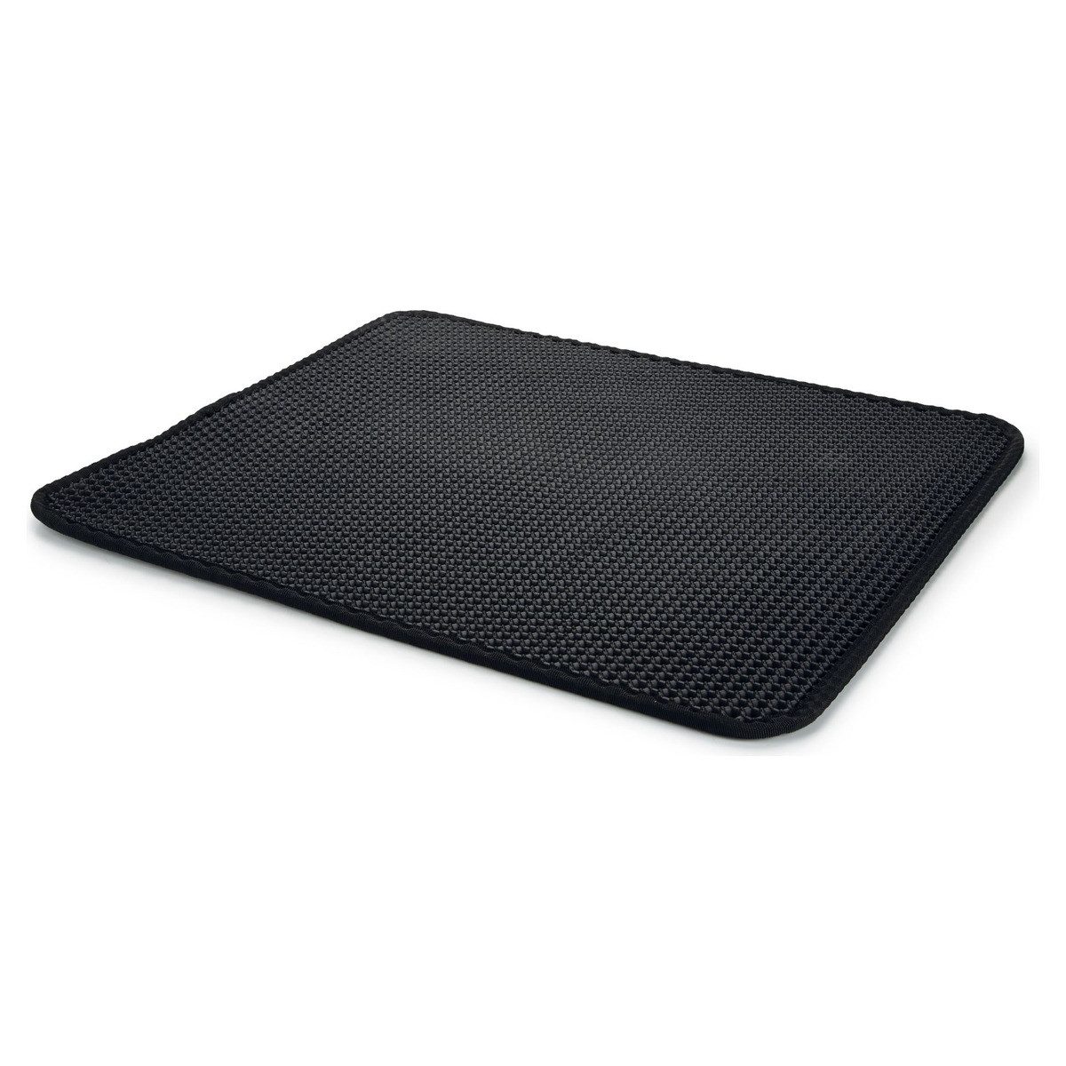 Die Beeztees Katzenstreu Doppelmatte ist die perfekte Lösung für umherliegende Katzenstreu. Katzenbesitzer kennen das Problem: beim Verlassen der Katzentoilette tragen Katzen immer etwas Katzenstreu mit heraus und man muß anschließend wieder sauber machen. Das ist mit dieser Matte nicht mehr nötig, denn sie fängt die Katzenstreu auf und hält sie zwischen den beiden Schichten fest, so dass sie nicht auf dem Fußboden landet. Dazu muss die Matte nur vor die Katzentoilette gelegt werden. Die so aufgefangene Katzenstreu kann dann auch wieder verwendet werden. Die Matte ist auf der Unterseite mit einer Anti-Rutsch Beschichtung ausgestattet und verrutscht nicht. Zudem ist sie sehr leicht zu reinigen und kann mit Wasser abgespült werden.