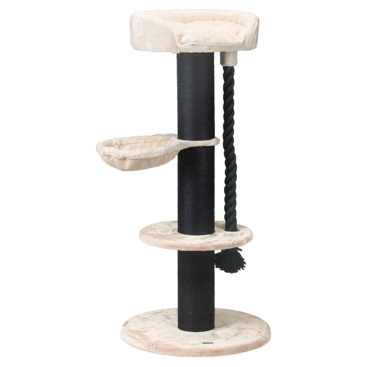Das Modell HAVILO ein echter Riese unter den Kratzmöbeln. Dafür sorgt nicht nur seine Höhe, sondern vor allem auch der extra dicke Sisalstamm mit einem Durchmesser von 20 cm. So ist dieser stabile Kratzbaum bestens geeignet für große und starke Katzenrassen. Die mit einem hohen Anteil an Plüsch gearbeiteten Elemente bieten Stubentigern gleich mehrere Orte für ein flauschiges Entspannen. Über eine Plattform kann die Katze zum Liegeplatz oder dem Schlafkorb klettern. Ein herrlich weiches Kissen sorgt für extra Komfort. Ein zusätzlich befestigtes Seil bietet zudem eine tolle Spielmöglichkeit. Und auch optisch macht der Kratzbaum HAVILO etwas her. Für Sisal und Plüsch wurden drei Farbkombinationen gewählt, die dem Kratzbaum einen besonderen Look geben.