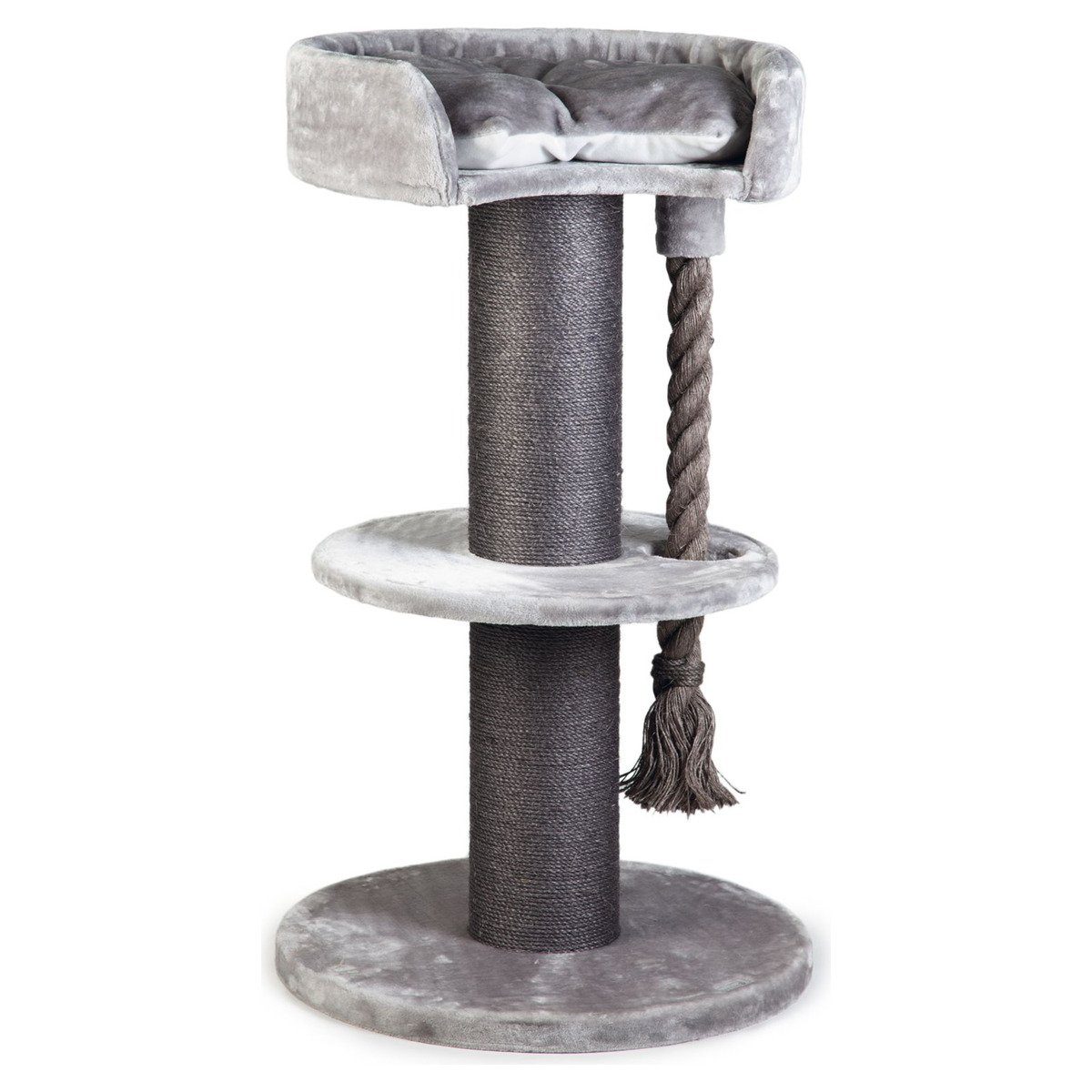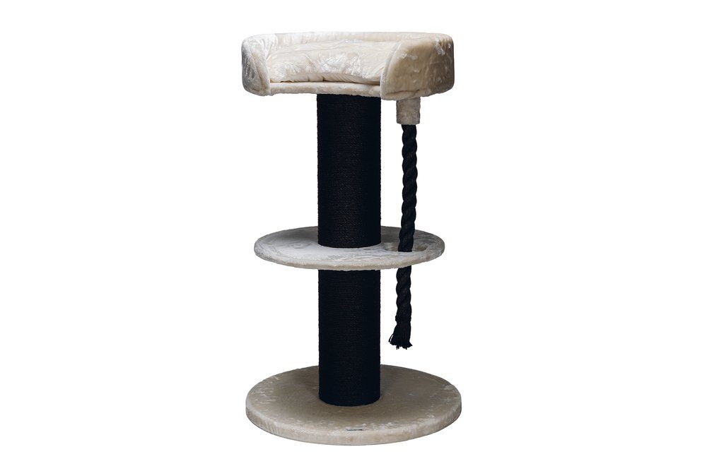 Das Kratzmöbel WELLO ist ein stabiler Kratzbaum mit allem Komfort. Der extra dicke Sisalstamm ist bestens geeignet für große und starke Katzenrassen. Eine zusätzliche Plattform ermöglicht der Katze das Klettern zum mit Plüsch bezogenen Liegeplatz. Dort kann sie, an die erhöhten Ränder gekuschelt, ein kleines Nickerchen halten. Das weiche Kissen sorgt für den extra Schlafkomfort. Das farbige Seil lädt zum Spielen ein. So kommt auch der Spaß nicht zu kurz.