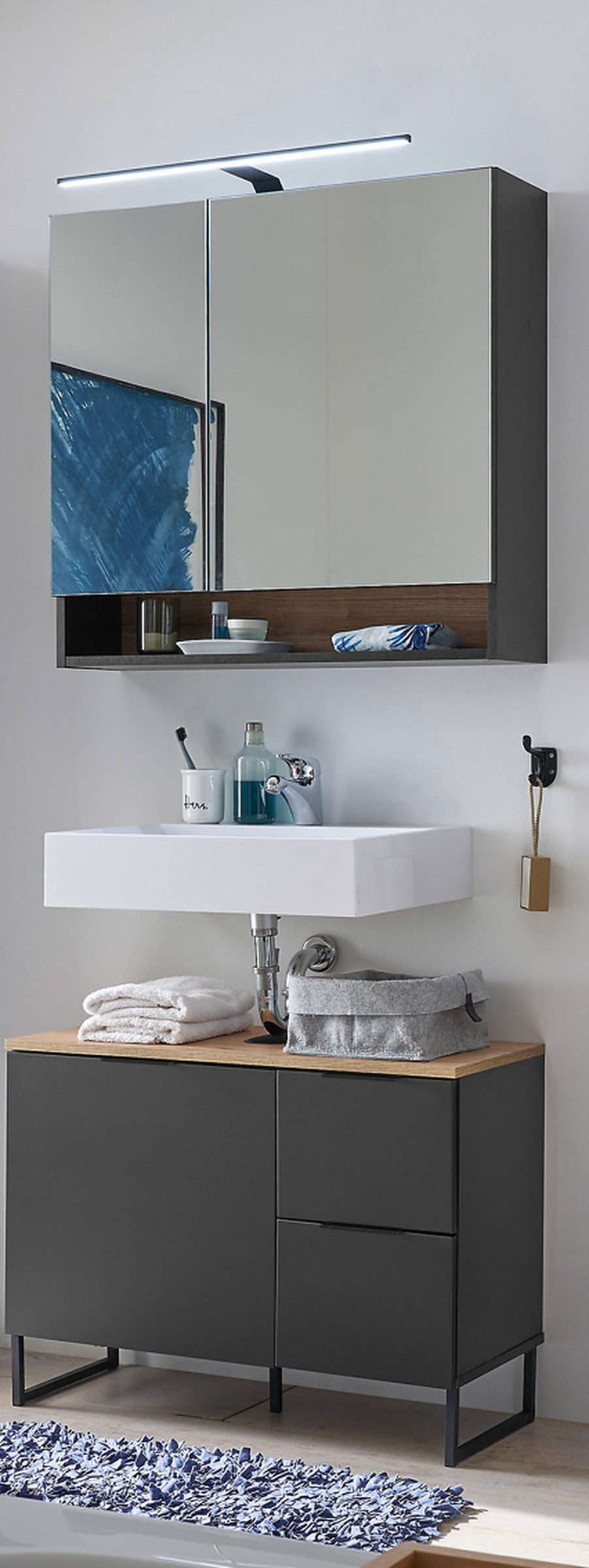 Set beinhaltet | Waschbeckenunterschrank B/H/T 80x60x35 cm, Spiegelschrank inkl. LED B/H/T 80x75x22 cm |