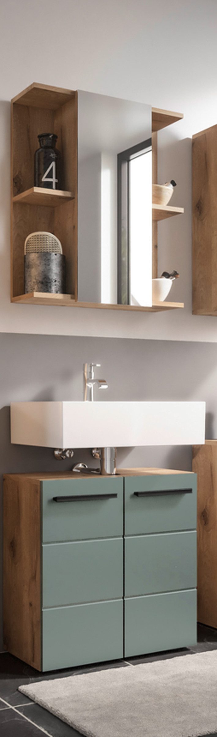 Set beinhaltet | bestehend aus: Waschbeckenunterschrank B/H/T 60x62x31 cm , Spiegelschrank B/H/T 60x71x20 cm, |