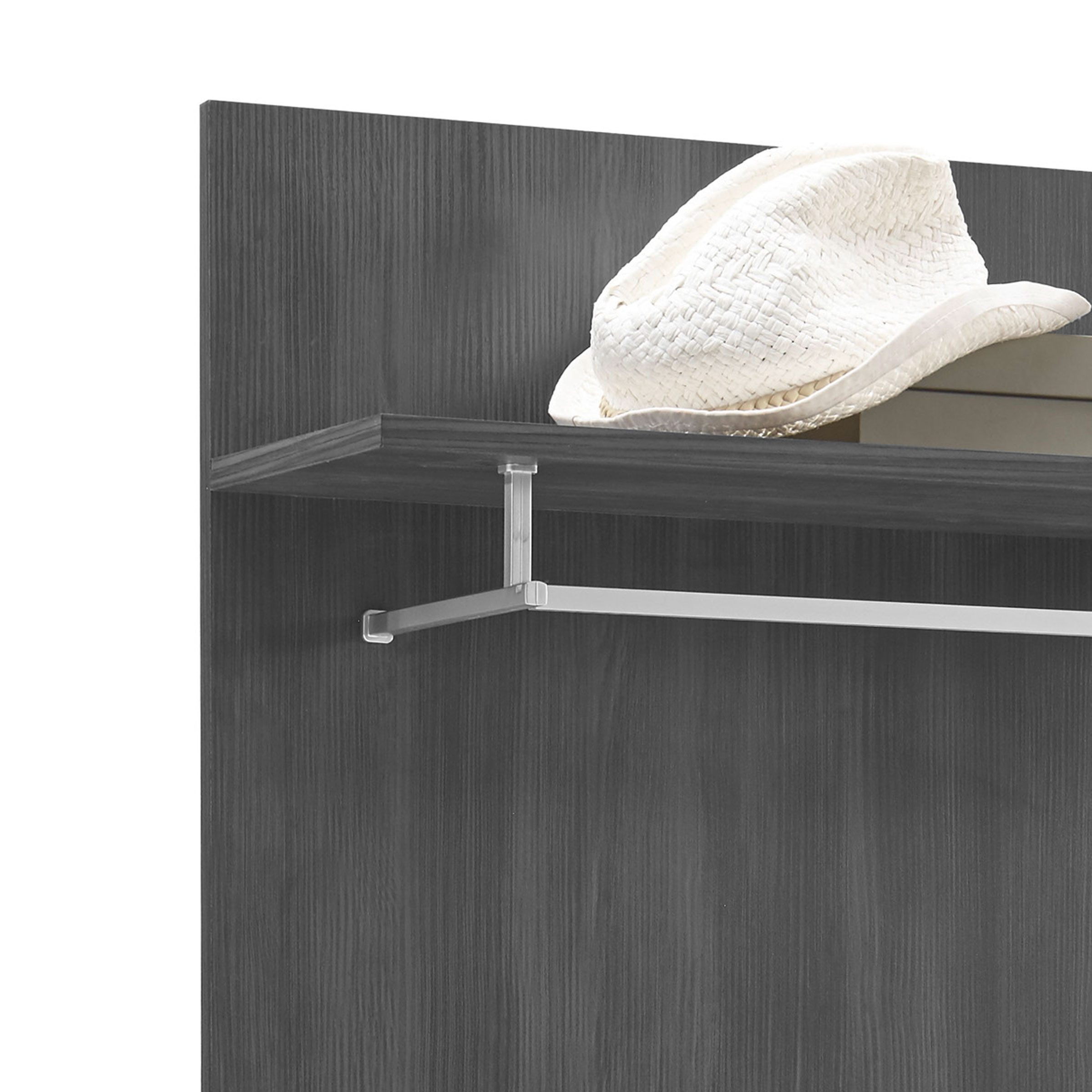 Das Garderobenpaneel Melody vereint modernes Design mit praktischer Funktion und ist die perfekte Ergänzung für Ihren Eingangsbereich. Der Korpus in Black North aus hochwertigem, foliertem Holzspanwerkstoff verleiht dem Paneel eine elegante und zeitgemäße Optik. Ausgestattet mit einer Hutablage, einer Kleiderstange und vier Kleiderhaken, bietet es vielseitige Möglichkeiten, Jacken, Hüte und Accessoires ordentlich zu verstauen. Mit seinem klaren Design und der funktionalen Ausstattung bringt das Garderobenpaneel Melody Stil und Ordnung in Ihre Diele.