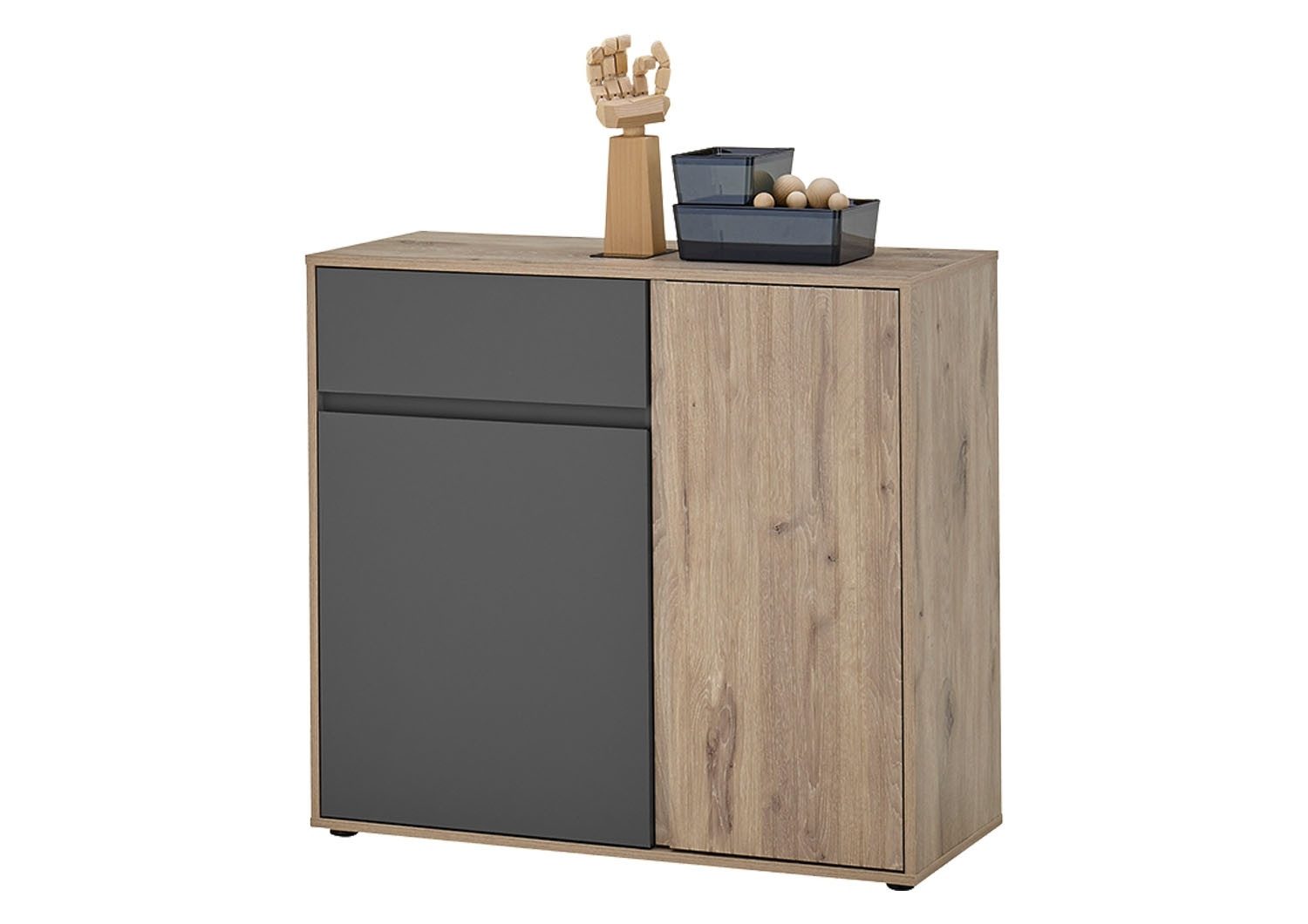Lieferumfang | 1 Kommode mit 2 Türen, 2 dreifach höhenverstellbaren Einlegeböden und 1 Schublade |