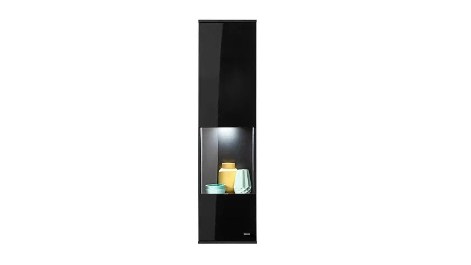 Die Hängevitrine ODESSA mit ihrer Front aus schwarzem, tiefgezogenem Hochglanz-MDF und dem passenden schwarzen Korpus ist die perfekte Ergänzung für Ihr Zuhause. Mit einer Tür bietet diese Vitrine nicht nur Stauraum, sondern auch die Möglichkeit, Ihre wertvollen Schätze stilvoll zur Schau zu stellen. Die Besonderheit dieser Vitrine? Das Hochglanz-Tiefzieh-MDF, das für ein atemberaubendes Erscheinungsbild sorgt und Ihre Ausstellungsstücke ins Rampenlicht rückt. Und das Beste daran? Die Vitrine ist bereits mit Beleuchtung ausgestattet, um Ihre Sammlung noch eindrucksvoller zu präsentieren.