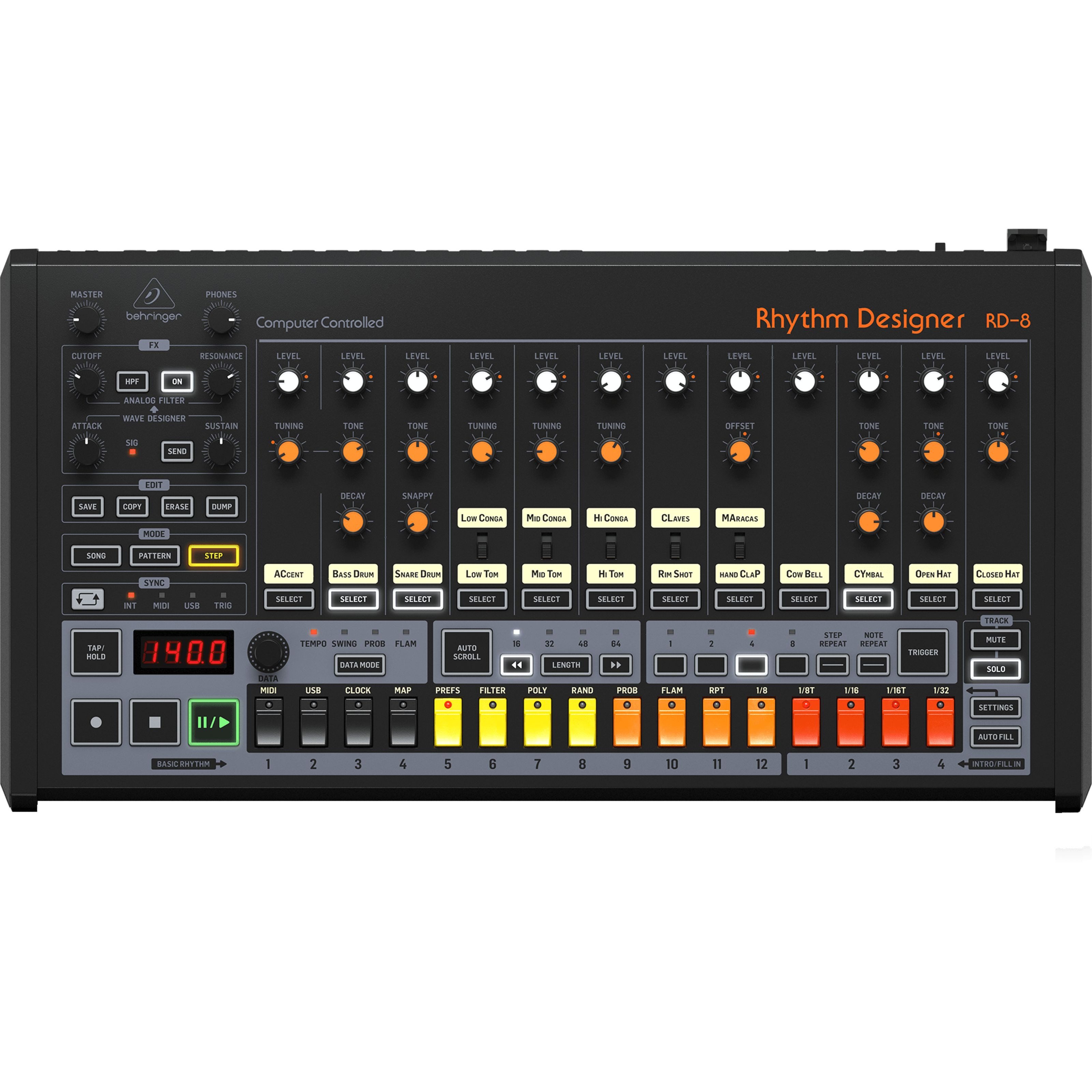 Ausstattung | MS-ID: SYN0007946-000 Hersteller: Behringer Bauform / Tastenanzahl: Desktop ohne Tastatur Tonerzeugung: Analog Polyphonie: 11 Anschlagdynamik: Ja Aufnahmemöglichkeit: MIDI-Stepsequenzer integr. Effektprozessor: Ja Display: Ja Anzahl Drehregler: 33 Anzahl Taster: 59 Leuchttasten: Ja Midi Schnittstelle: Ja USB MIDI Schnittstelle: Ja LINE OUT: Ja Kopfhöreranschluss: Ja Stromversorgung: Netzteil extern inkl. Netzteil: Ja Breite (cm): 49.8 Höhe (cm): 7.7 Tiefe (cm): 26.5 Gewicht (kg): 3 Gewicht Range (kg): 2,5 - 5 |