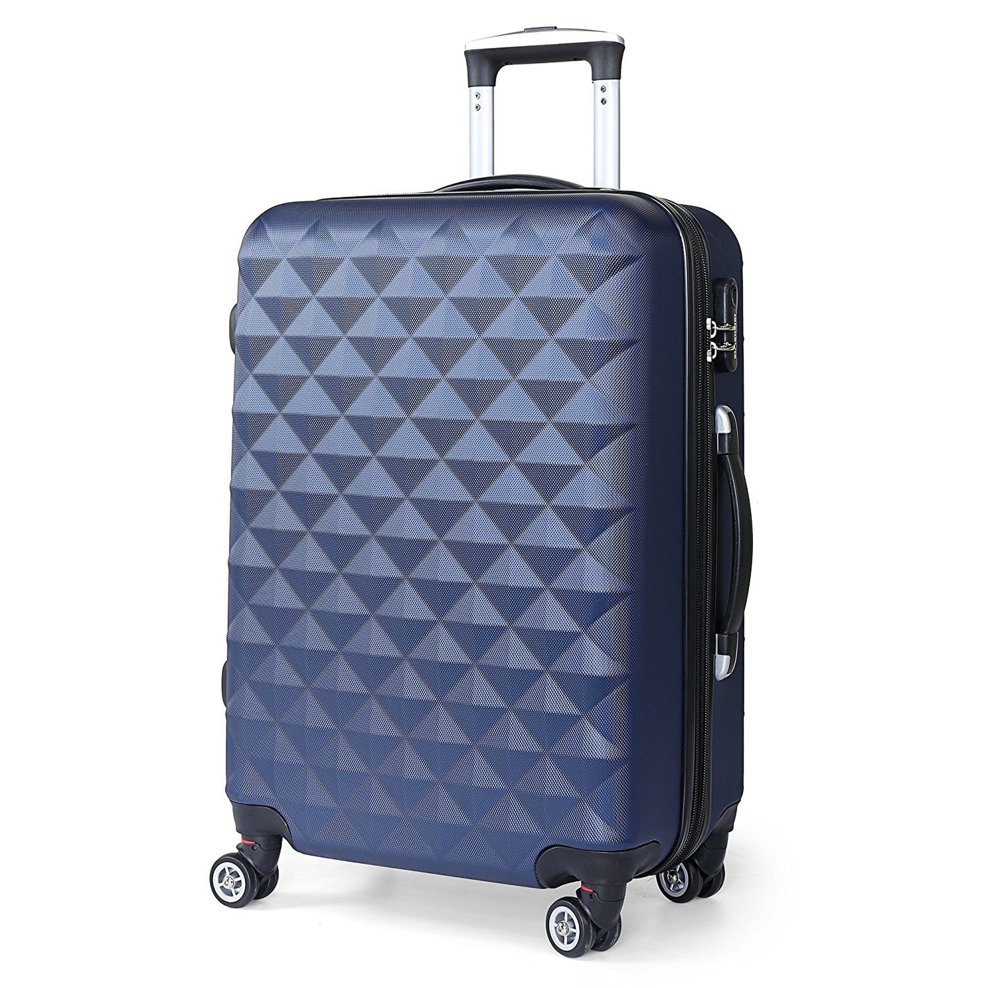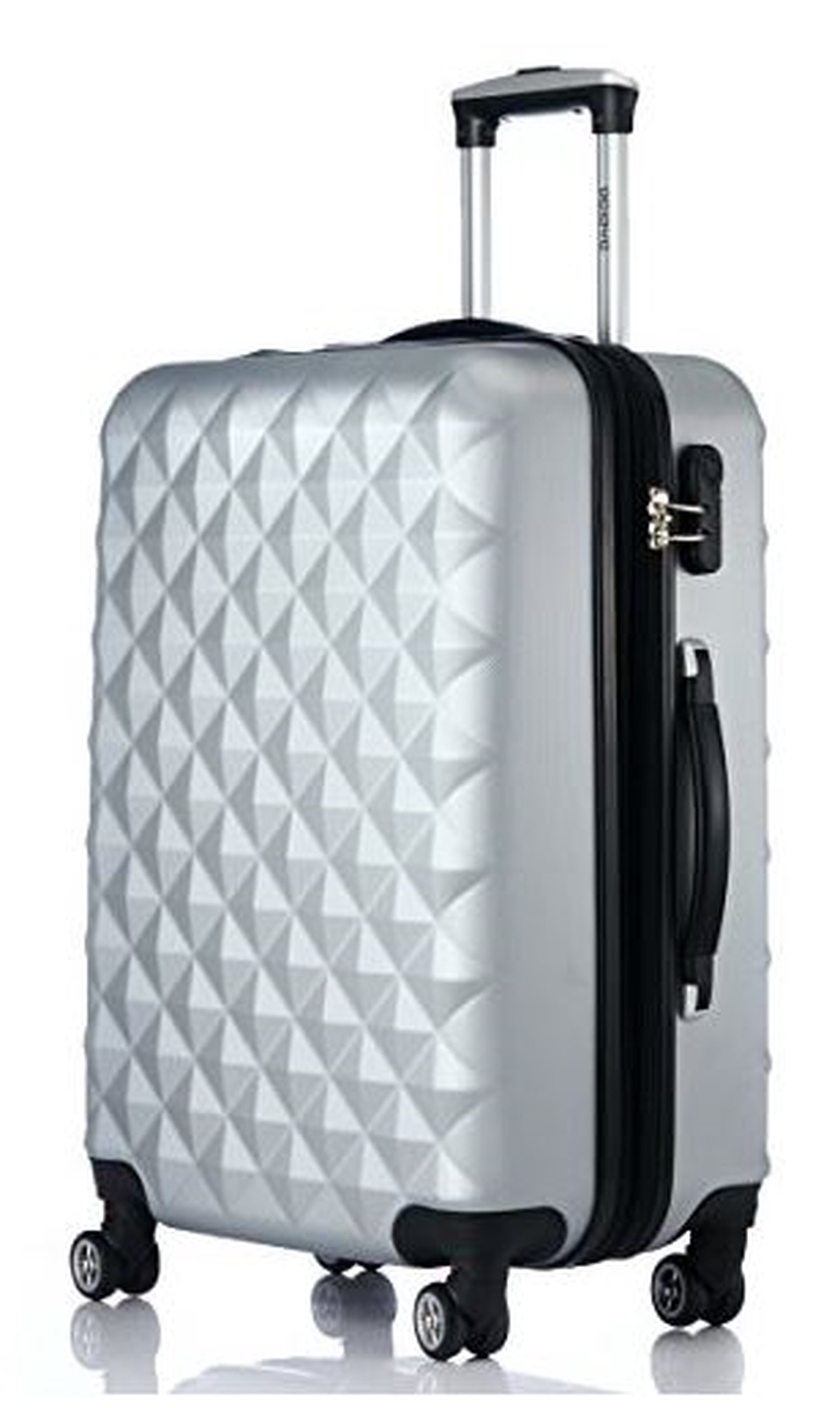 Edler Hartschalen-Trolley-Koffer. Die aus ABS/Polycarbonat gefertigte Trolley zeichnet sich durch Leichtigkeit, viel Volumen, 4-Rollen-Technik und höchste Widerstandsfähigkeit, aus. Durch die 4 leichtlaufenden Rollen (360 Grad-Drehung) mit Kugelgelenken ist das Manövrieren der Koffer ein Leichtes.