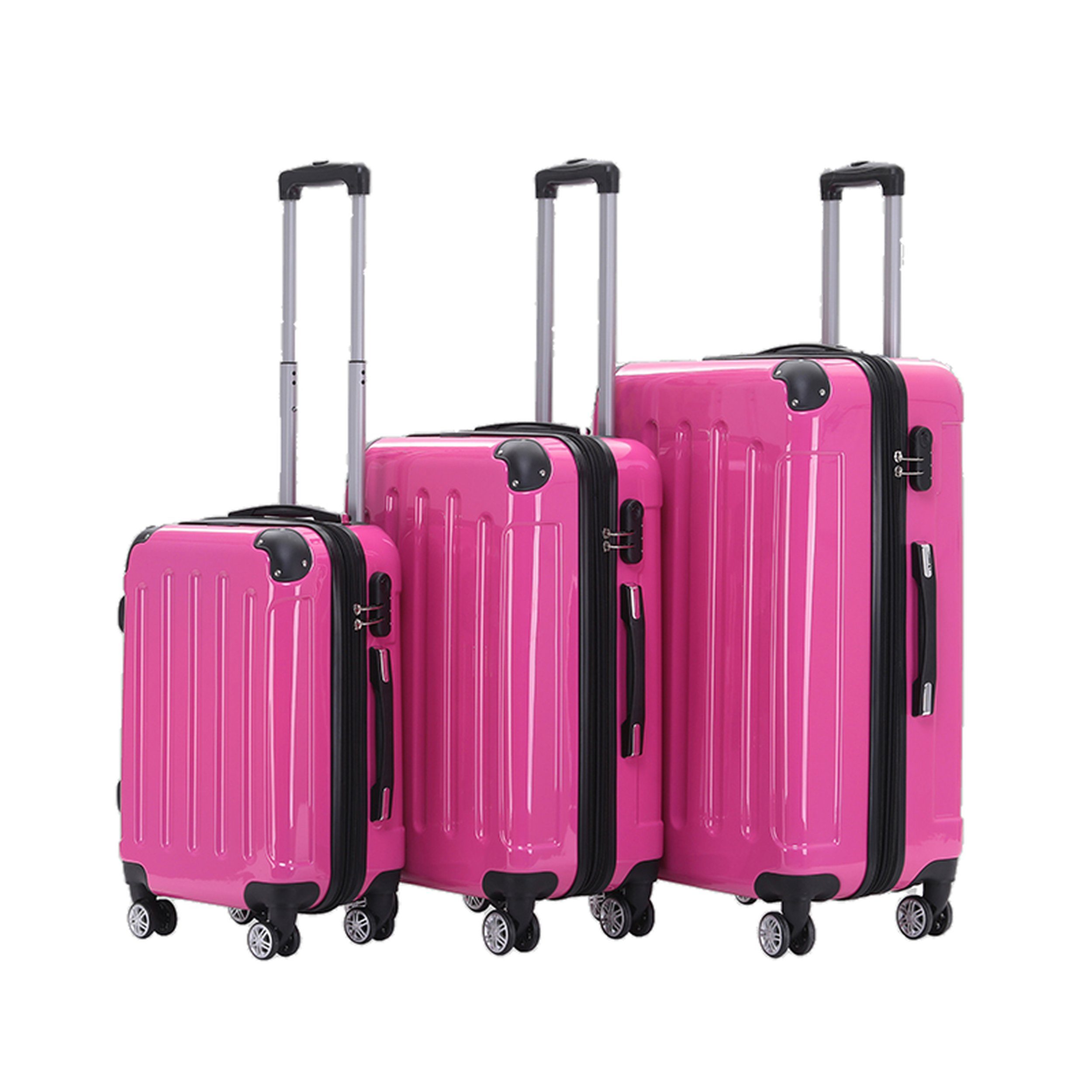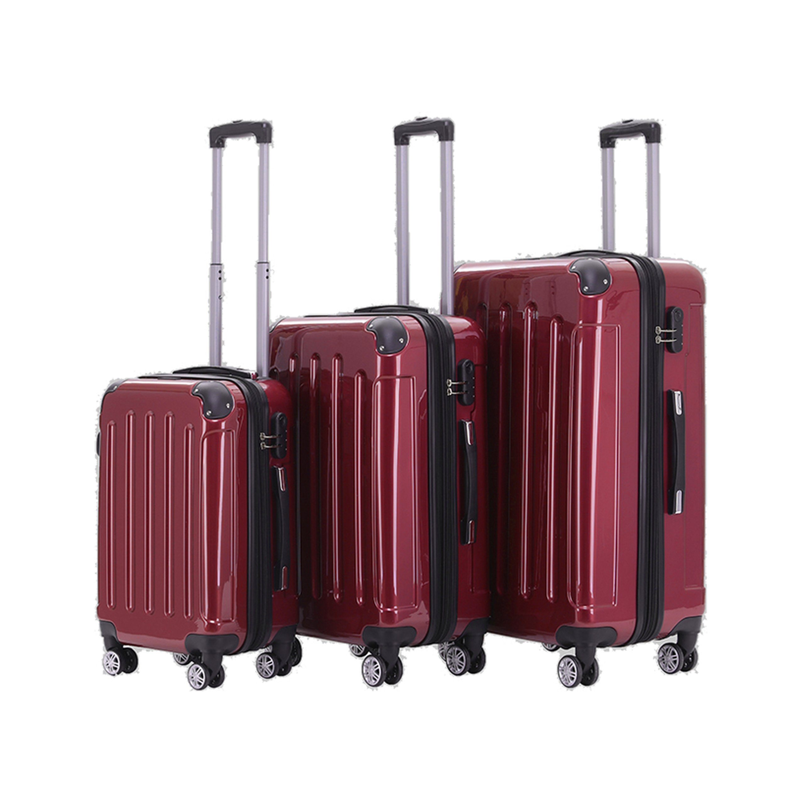 Beschreibung -Geringes Gewicht - viel Volumen - siehe weiter unten; -Jeder Trolley mit 4 Rollen (360 Grad) auf Kugelgelenken; -Innenliegendes leichtgängiges Trolley-Gestänge; -Integriertes Zahlenschloss (3-stellig); -Tragegriffe oben und seitlich; -Dehnfalte für zusätzliches Volumen (ca. 25-30%); -Komplette Innenfütterung; -Innentaschen - Packbänder; -Beidseitige Packmöglichkeit; -Stabile Doppelreißverschlüsse; -Keine hervorstehenden Teile;