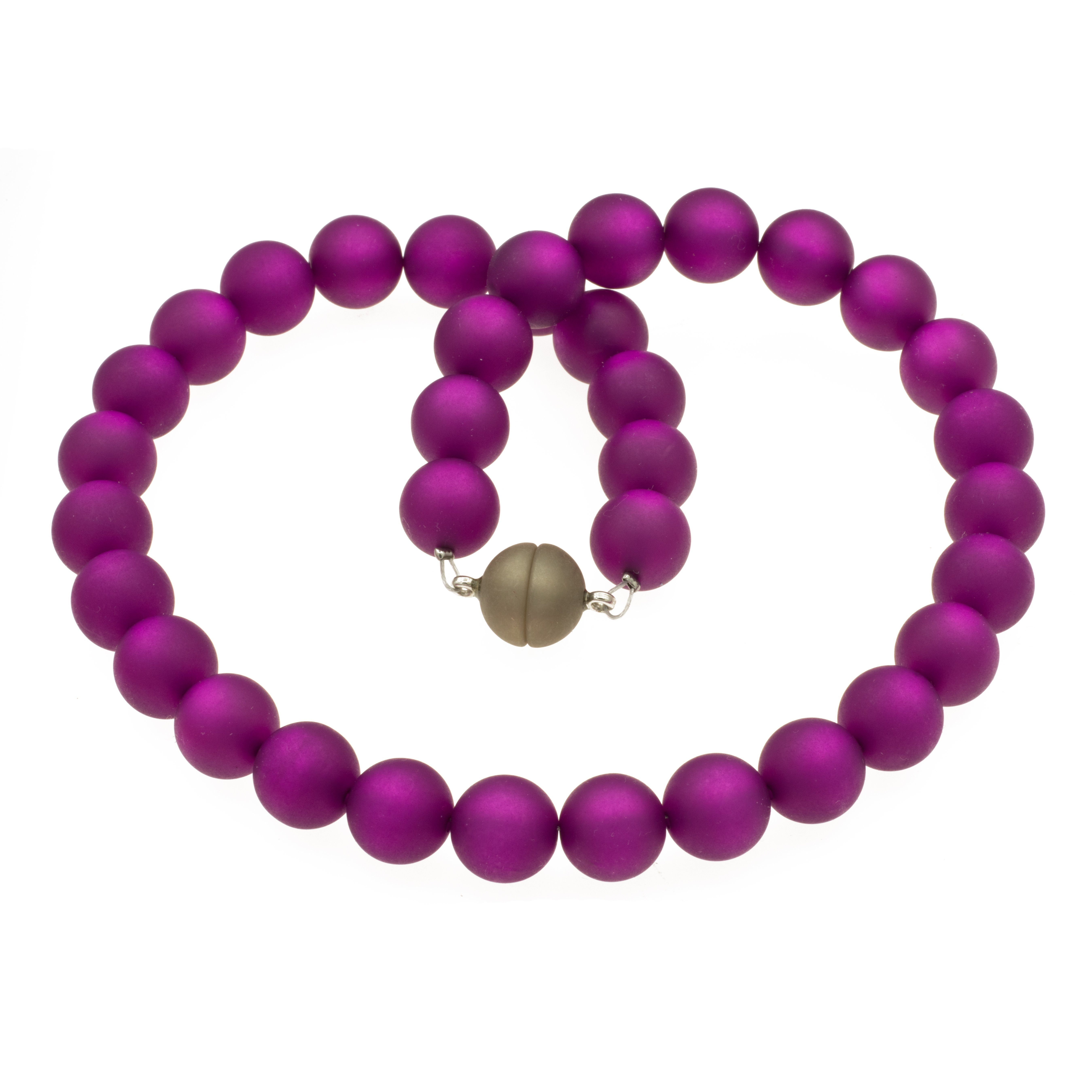 Kette mit Polaris Perlen in lila, 14 mm Perlen. Polaris Perlen stammen aus Italien, sie schillern dezent und immer mehr je länger sie getragen werden. Die Kette wird von uns in unserer Berliner Werkstatt gefertigt.