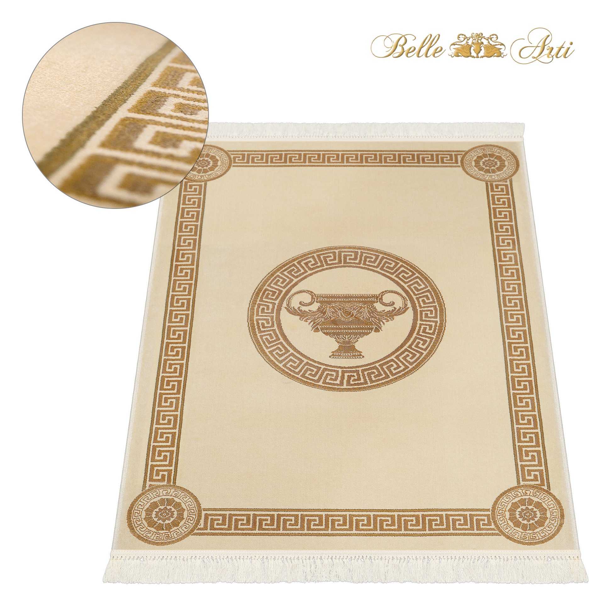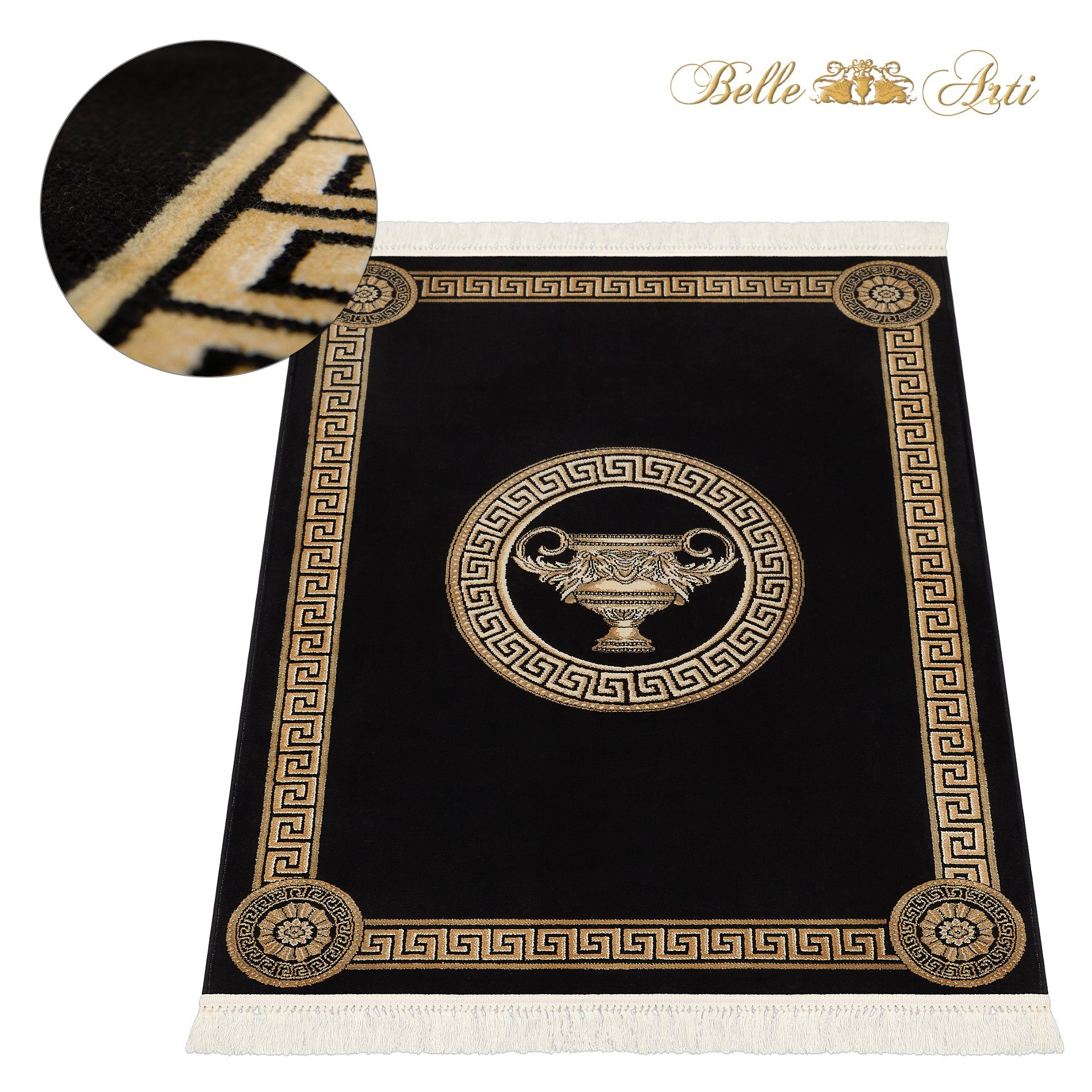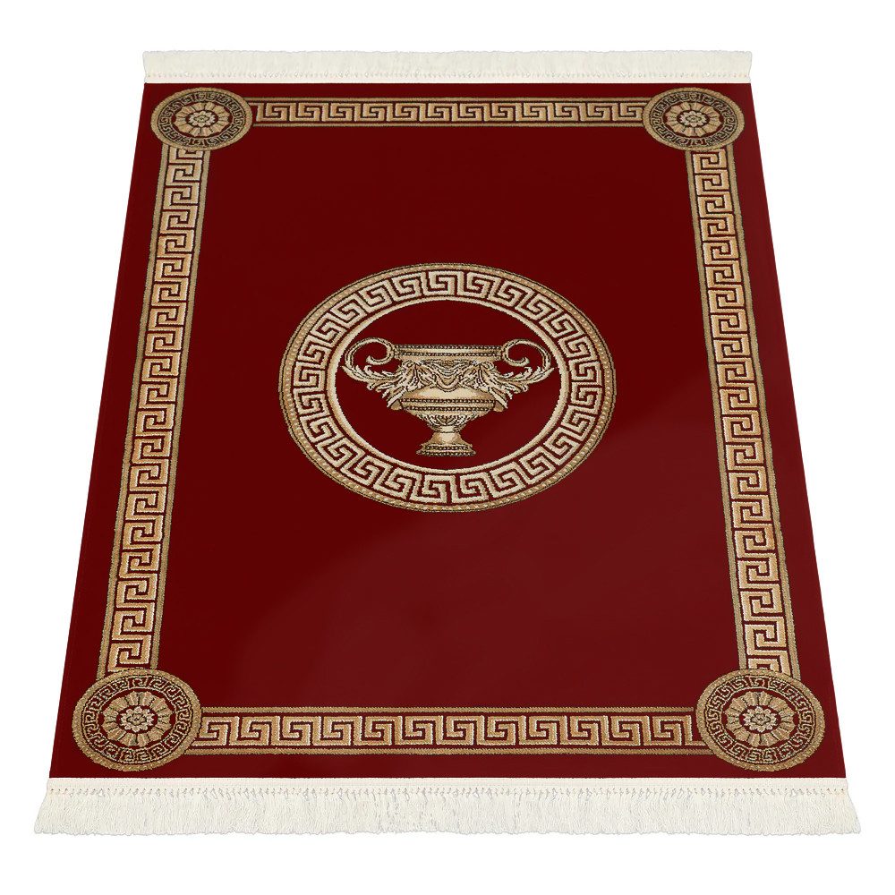 Erleben Sie unsere Amphore Medusa Teppiche mit Seidenoptik im italienischen Stil. Erhältlich in verschiedenen Farbvarianten wie Schwarz Gold, Beige oder Rot sowie in rechteckiger, runder oder ovaler Form. Unsere hochwertigen Teppiche fügen jedem Zimmer, ob Wohnzimmer, Esszimmer Flur oder Eingangsbereich eine attraktive und elegante Atmosphäre hinzu. Hergestellt aus 100% hochwertigster Viskose bietet er ein angenehm weiches Gefühl unter den Füßen. Der kurze Flor sorgt für ein präzises und raffiniertes Erscheinungsbild, das sofort durch seinen Seidenglanz Effekt ins Auge fällt. Unsere Teppiche sind durch die Viskoseverarbeitung, von einem echten Seidenteppich kaum zu unterscheiden. Die elegante Kombination von Schwarz Rot Creme-Beige und Gold verleiht den Teppichen einen zeitlosen und luxuriösen Charakter, der mit verschiedenen Einrichtungsstilen harmoniert. Das italienische Design dieses Teppichs strahlt Eleganz und Klasse aus. Jeder Teppich wird sorgfältig und liebevoll hergestellt, wobei die Fransen von Hand geknüpft werden, um eine außergewöhnliche Qualität sicherzustellen. Die Verwendung hochwertiger Materialien und die präzise Webtechnik gewährleisten Langlebigkeit und Widerstandsfähigkeit gegen Abnutzung. Dieser luxuriöse Teppich besticht nicht nur durch sein ästhetisches Erscheinungsbild, sondern auch durch seine enorme Strapazierfähigkeit. Er ist darauf ausgelegt, den täglichen Gebrauch mühelos zu bewältigen und gleichzeitig sein luxuriöses Aussehen zu bewahren. Darüber hinaus ist er pflegeleicht und einfach zu reinigen, um seine Schönheit und Qualität im Laufe der Zeit zu bewahren. Empfohlen wird jedoch eine professionelle chemische Reinigung. Entdecken Sie authentischen Luxus mit diesem italienischen Designerteppich und lassen Sie Ihren Wohnbereich erstrahlen. Genießen Sie den Komfort und die Exklusivität, die dieser Teppich bietet, schaffen Sie eine unvergessliche Atmosphäre in Ihrem Zuhause.