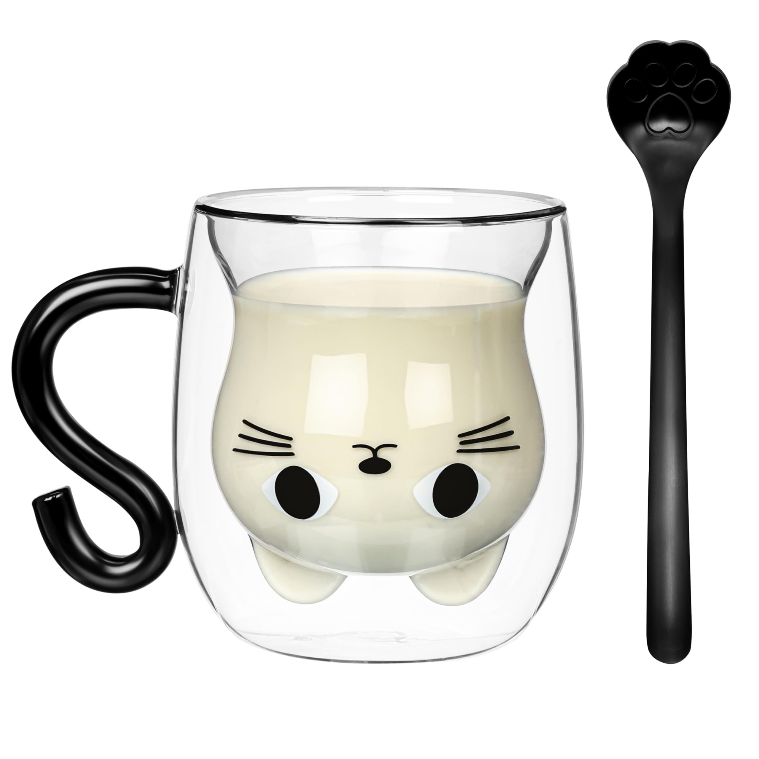 Unsere hübschen Glasbecher mit ihrem originellen Katzen-Design sind perfekt für jede Gelegenheit. Hergestellt aus blei- und BPA-freiem transparentem Borosilikatglas, hat dieser hübsche Becher eine doppelte Wand, thermische Isolierung und ist mikrowellen- und spülmaschinenfest. Außerdem kann er Temperaturen zwischen -10 und 110 Grad Celsius standhalten. Das doppelwandige Design hält Getränke länger warm oder kalt, während das äußere Glas kühl bleibt. Er eignet sich perfekt für die Zubereitung von Eiskaffee, Tee, Espresso, Cappuccino, Cocktails, Shakes, Säften, Eis und allen Arten von Getränken. Er kann ein perfektes Valentinstag- oder Weihnachtsgeschenk für jeden Freund oder Familienmitglied sein, der Katzen mag. Die transparente Tasse hat ein Fassungsvermögen von 290 ml und verfügt über einen einfach zu haltenden Griff.