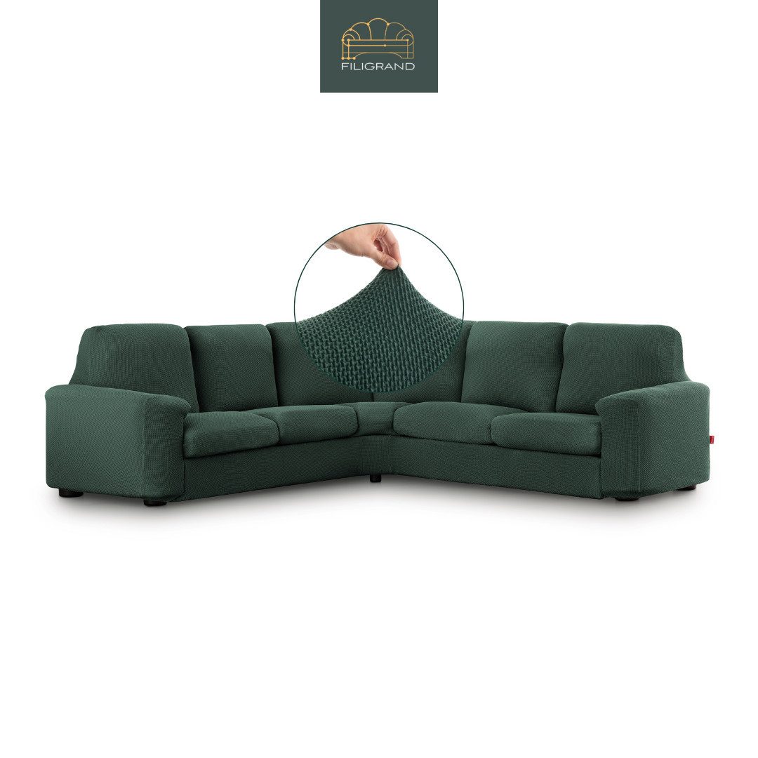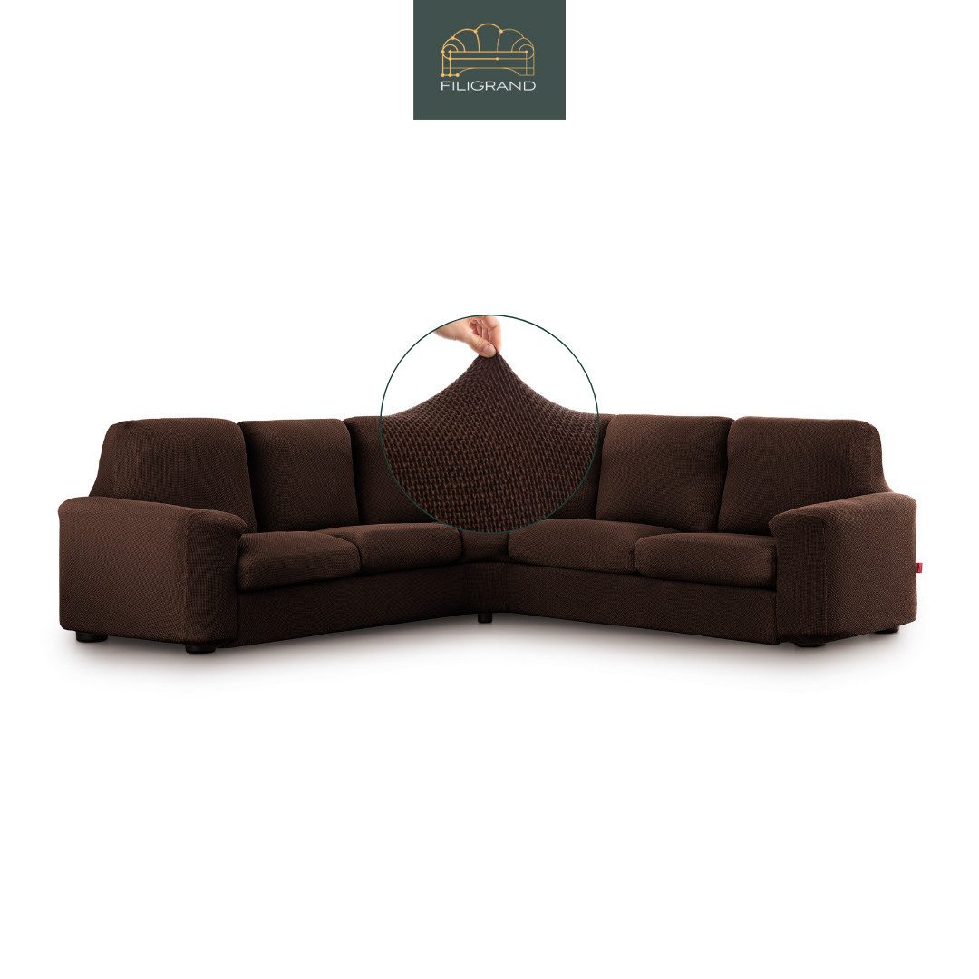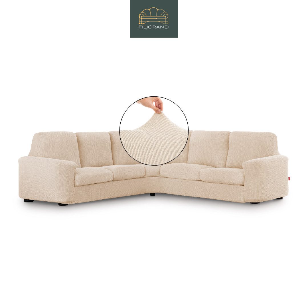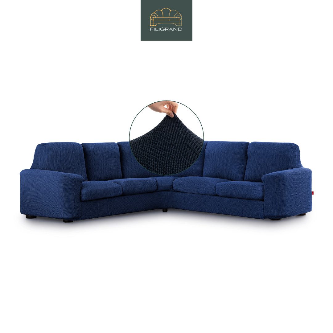 Den Ecksofabezug gibt es in 2 Größen. Bitte die angegebenen Maßangaben beachten und vor dem Kauf Ihre Möbel messen. Dieser Bezug ist flexibel einsetzbar für viele Arten von Ecksofa geeignet. Die Fixierung erfolgt mit angebrachtem und mitgeliefertem Zubehör (Schaumstoffsticks). Der Überzug hat unten am Saum ein festes Gummiband, was zusätzlich für guten Halt der Husse sorgt. Der Ecksofabezug bedeckt Ihr Sofa komplett von allen Seiten, somit ist er auch für freistehende Polstermöbel geeignet. Für die Anbringung bitte den QR-Code auf der Produktanleitung für das Produktvideo scannen. Sollte der Eindruck entstehen der Bezug wäre zu klein, dann wurde er nicht ordnungsgemäß ausgedehnt. Bitte den Bezug Stück für Stück nachziehen. Wenn Ihr Möbelstück im angegebenen Bereich liegt, wird der Bezug darauf problemlos passen.