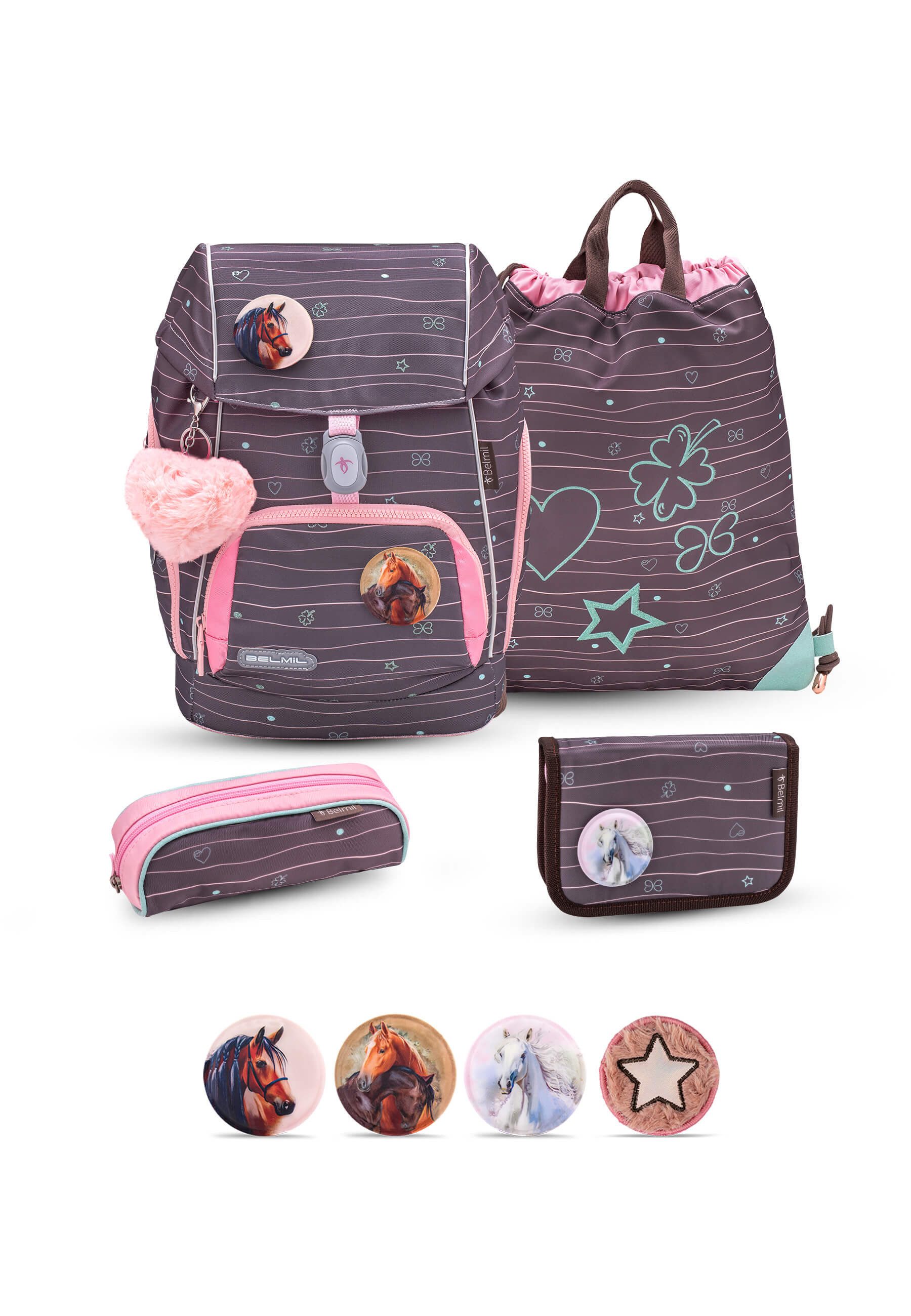 Ergonomischer Schulrucksack-Set 5-teilig mit Brustgurt, Hüftgurt, geeignet von der 1. - 4. Klasse