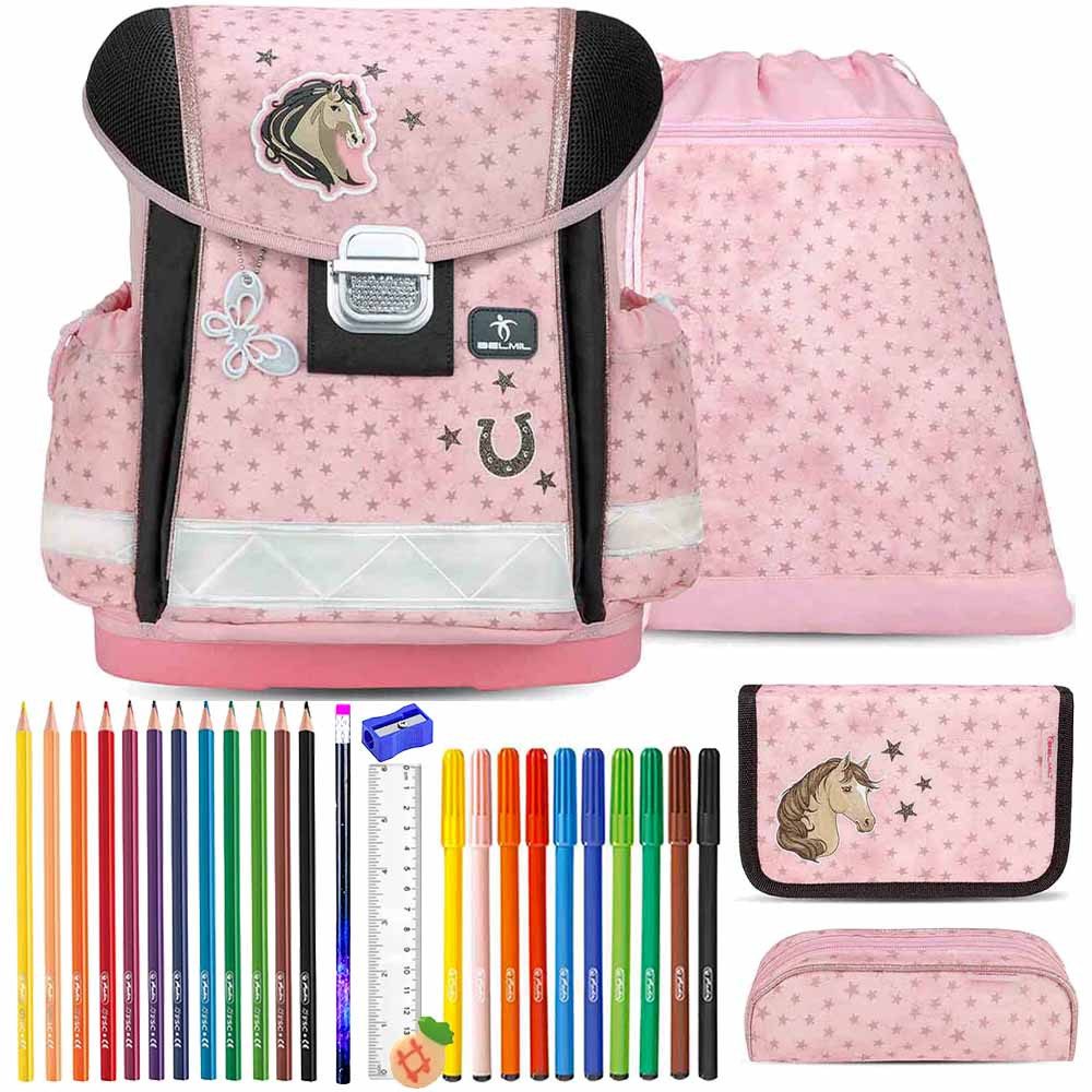 ACHTUNG! Bei diesem Belmil Schulranzen Classy Star Horses handelt es sich um ein Qualitätsprodukt, welches nach den neuesten Erkenntnissen des Gesundheits- und des Umweltschutzes erstellt worden ist. Das Bild zum gefüllten Schüleretui zeigt nur ein Beispiel, wie die Füllung aussehen kann. Je nach Verfügbarkeit, zum Zeitpunkt der Lieferung, kann der dargestellte Inhalt von der tatsächlichen Lieferung minimal abweichen. Bitte beachten Sie, dass die Farben auf Ihrem Bildschirm von den Originalfarben abweichen können.