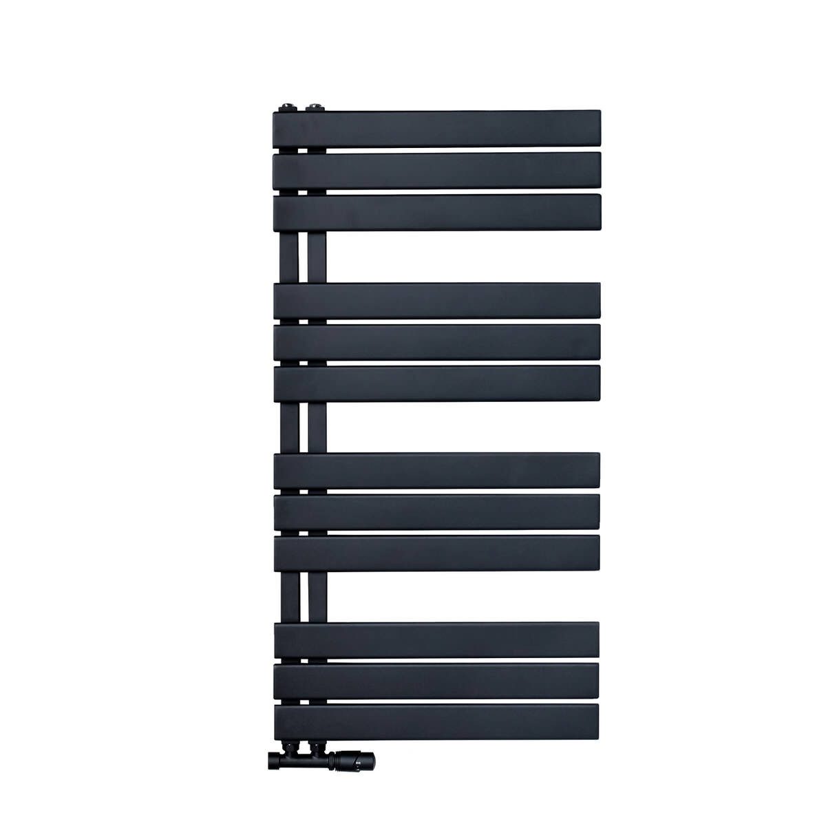 Design und Eleganz in Kombination mit Funktionalität – das ist unser neuer Handtuchheizkörper in modernem Look und spezieller schwarz-matter Lackierung. Dieses Modell zeichnet sich durch seine stilvollen Seitenpaneele aus, auf denen dank der üppigen Bauweise auch problemlos mehrere Handtücher zum Trocknen aufgehängt werden können. Hier kann er auch mit seiner Wärmeleistung von 755 Watt überzeugen und das Badezimmer problemlos warmhalten.
