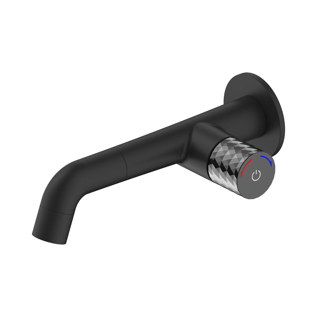 Die Badewannenmischarmatur in mattschwarzer Ausführung kombiniert modernes Design mit funktionaler Technik für den Wandeinbau. Die Bedienung erfolgt bequem per Druckknopf, wodurch sich der Wasserfluss einfach und präzise aktivieren lässt – ganz ohne herkömmlichen Hebel.