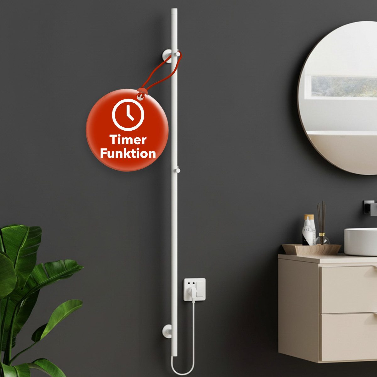 Dank 60 W Heizleistung und Netzstecker funktioniert der Handtuchtrockner unabhängig von der Zentralheizung. Das 120 cm lange Kabel ermöglicht flexible Montage. Die platzsparende Bauform ist ideal für kleinere Badezimmer, Gäste-WCs oder Ferienwohnungen – ohne auf Komfort zu verzichten.