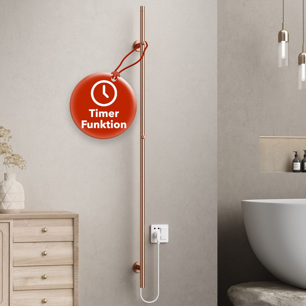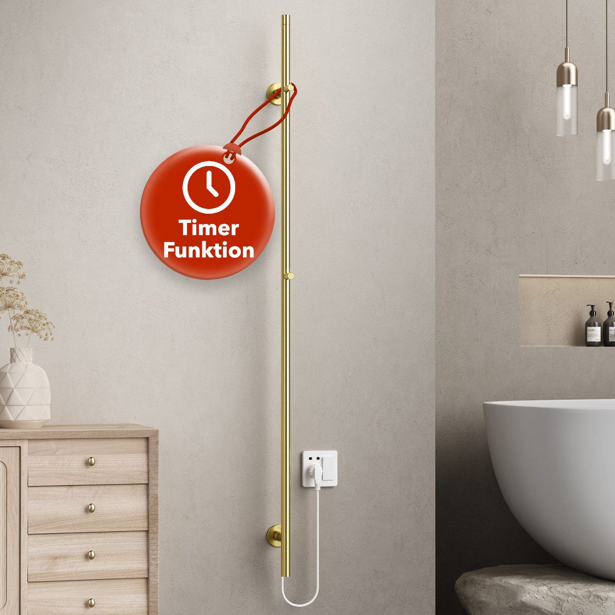 Der elektrische Handtuchtrockner von Belvit verbindet modernes Design mit effizienter Heizleistung. Mit 150 cm Höhe, zwei Heizstufen und integrierter Timerfunktion sorgt er für angenehm vorgewärmte Handtücher und ein komfortables Raumklima. Erhältlich in verschiedenen Oberflächen wie Schwarz, Weiß, Grau, Gold oder Kupfer passt er harmonisch in jedes Badambiente.