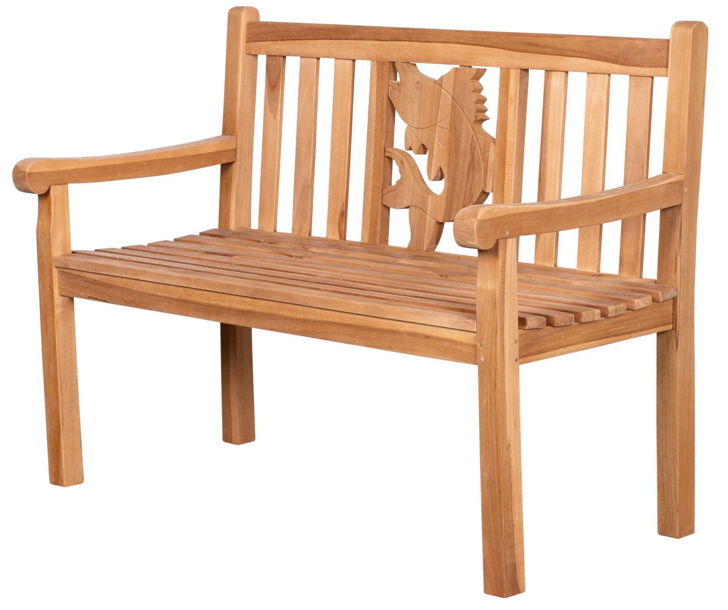 Unsere charmante Gartenbank aus Teakholz mit dem dekorativen Fisch-Motiv auf der Rückenlehne bringt maritimes Flair und eine einladende Atmosphäre in Ihren Garten.