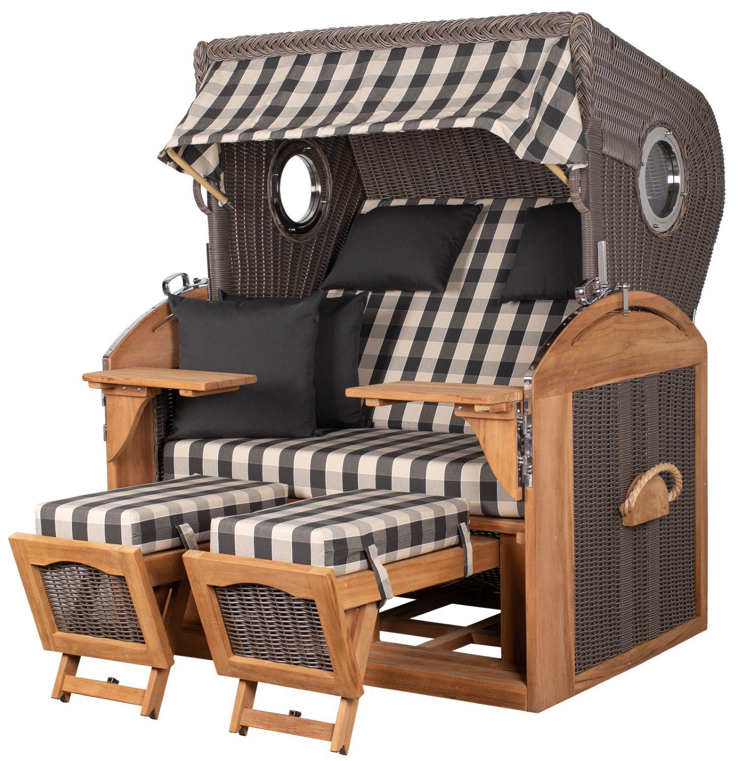 Der 2,5-Sitzer Nordsee-Strandkorb Borkum XL aus feinem Teakholz mit ausziehbaren Fußstützen ist ein äußerst komfortabler und ästhetisch ansprechender Begleiter für entspannte Stunden im heimischen Garten. Mit seinen Eigenschaften überzeugt er nicht nur durch sein Design, sondern auch durch seinen optimalen Komfort.