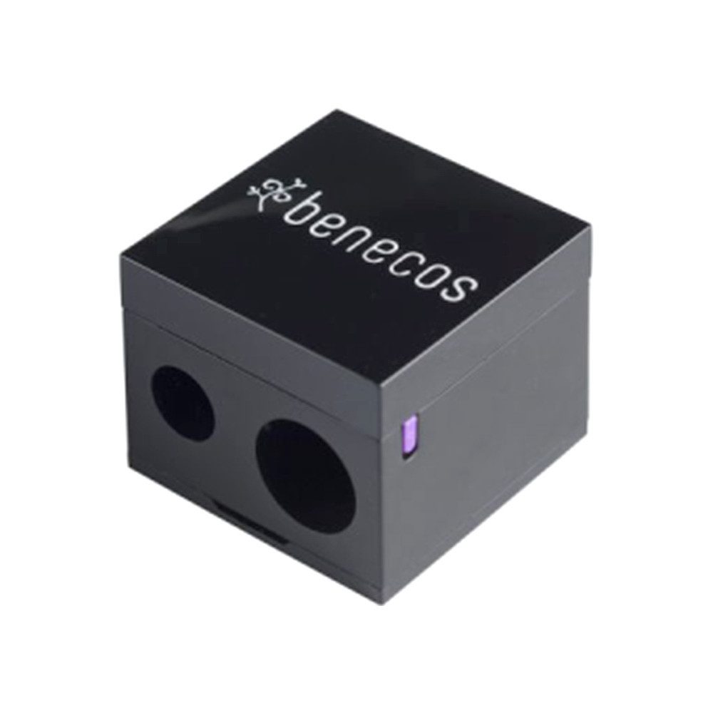 Der benecos Doppelspitzer ist perfekt auf die Minen der benecos Stifte abgestimmt. Mit seinen 2 unterschiedlichen Lochdurchmessern lassen sich auch etwas dickere Stifte spitzen. Wenn der Spitzer verschmutzt ist, kann er mit dem integrierten Reinigungsspatel gereinigt werden.