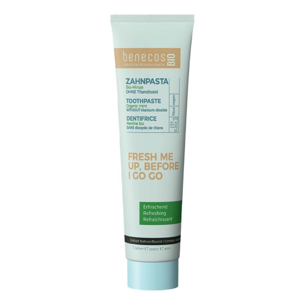 Zahnpasta für einen frischen Atem, mit Natriumfluorid und ohne Titandioxid! Mit erfrischendem Minzgeschmack und remineralisierendem Natriumfluorid (Fluoridgehalt: 1450 ppm) zur täglichen Anwendung. Nicht für Kinder unter 7 Jahren geeignet.