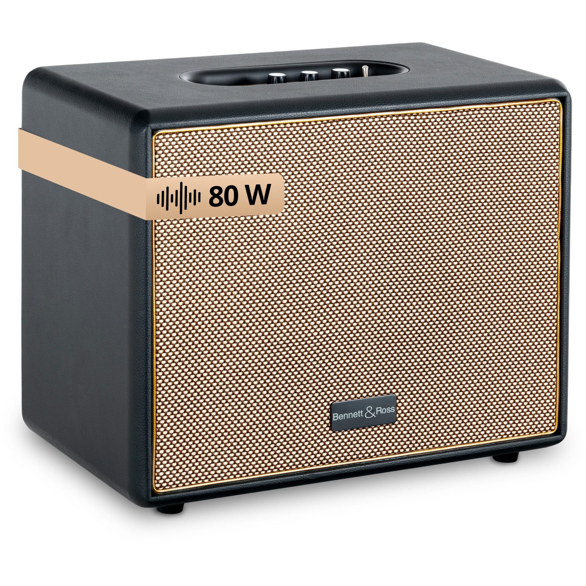 Der Blackmore Giant Lautsprecher von Bennett & Ross zeugt von gutem Geschmack in Sachen Klang und Design. Die Box bietet ein ausgeklügeltes Bassreflex-Soundsystem mit Bluetooth®-Anbindung, USB-Port sowie einem Aux In-Anschluss. Das alles verpackt in einem überaus ansprechendem Leder-Design mit hochwertigen Bauteilen.