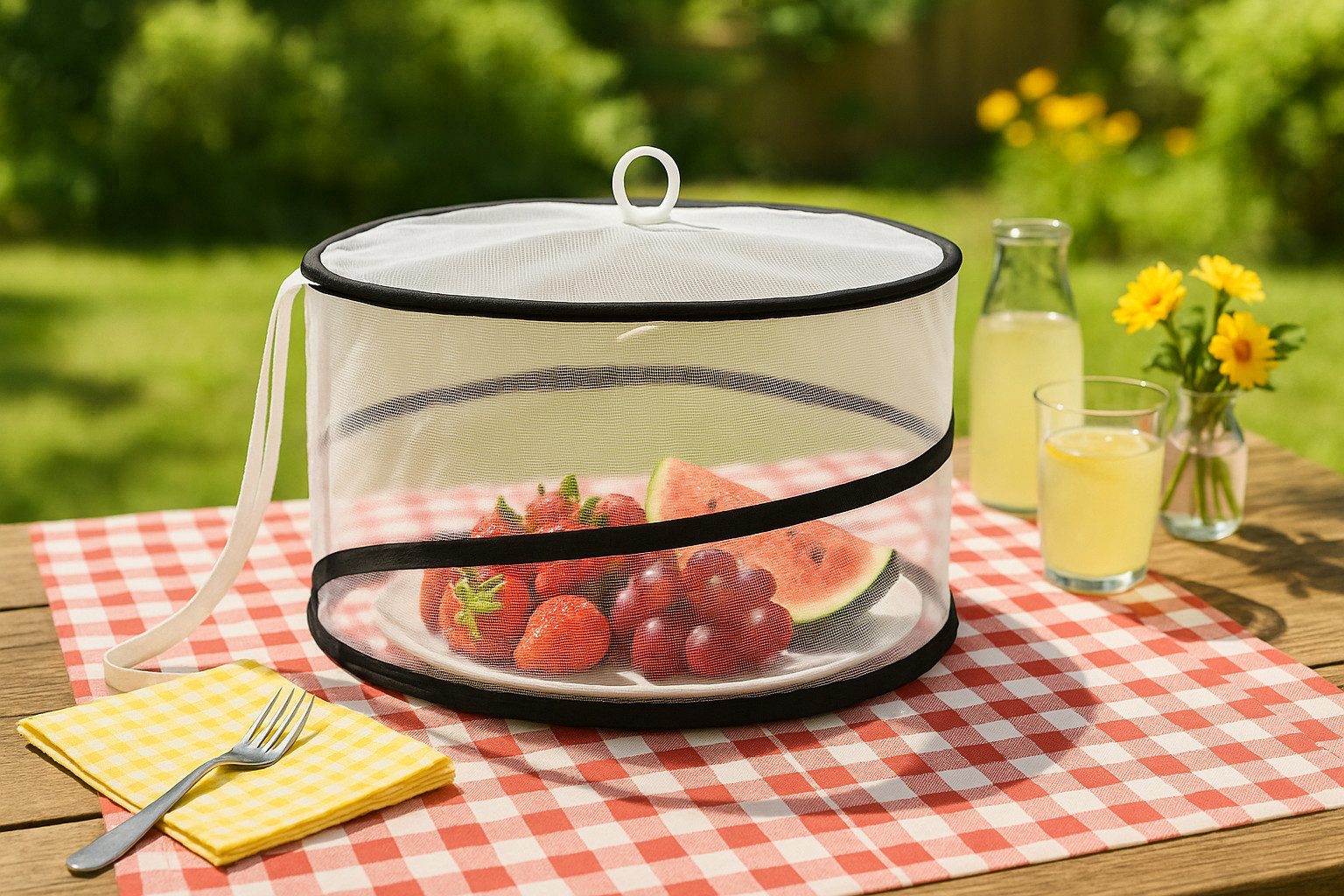 Dank des feinmaschigen Netzes bleibt die Luftzirkulation gewährleistet, während Obst, Gemüse, Desserts und Buffets sicher abgedeckt bleiben.