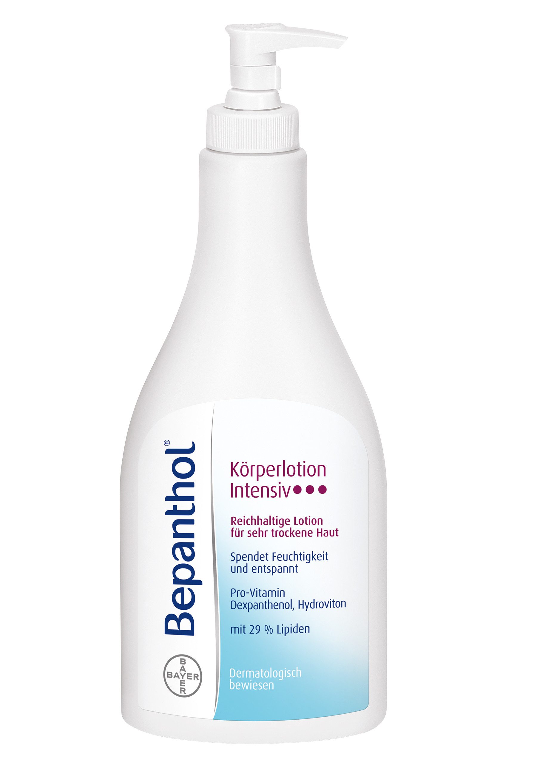 Anwendung | Sehr trockene Haut braucht reichhaltige Pflege: Die Bepanthol® Körperlotion Intensiv bietet hier Unterstützung. Durch die spezielle Formulierung mit dem Feuchthaltekomplex HYDROVITON®* versorgt sie die Haut umfassend mit Feuchtigkeit, zudem trägt sie zum Wiederaufbau der Hautschutzbarriere bei. Der zusätzliche Vorteil: Auch bei Diabetes kann die Bepanthol® Körperlotion Intensiv zum Einsatz kommen. Sehr trockene Haut macht sich meist durch schuppige Bereiche bemerkbar. Zudem fühlt sie sich rau an und beginnt zu spannen. Zahlreiche Einflüsse aus der Umwelt können für die starke Trockenheit verantwortlich sein. Sie greifen die Schutzbarriere der Haut an, sodass es zu einem starken Verlust an Feuchtigkeit kommt. Egal also, ob übermäßiges Waschen, Stress, trockene Luft oder die Witterung, all diese Faktoren haben eines gemeinsam – die Hautschutzbarriere kann ihnen auf Dauer nur schwer standhalten. Ist ihnen die Haut schutzlos ausgeliefert, hat das letztendlich Störungen im Feuchtigkeits- und Fetthaushalt zur Folge. Die Bepanthol® Körperlotion Intensiv kann dem entgegenwirken: Sie bietet sehr trockener Haut reichhaltige Pflege und spendet Feuchtigkeit, unterstützt den Fetthaushalt der Haut, fördert die Regeneration der Hautschutzbarriere und sorgt für geschmeidige und glatte Haut. Die Bepanthol® Körperlotion Intensiv ist auch für Diabetiker geeignet. Für die richtige Pflege Ihrer Haut tragen Sie die Bepanthol® Körperlotion Intensiv am besten nach dem Duschen oder Baden auf dem gesamten Körper auf. Besteht der Bedarf – beispielsweise, weil die Haut stark spannt – können Sie die Anwendung wiederholen. Die Bepanthol® Körperlotion Intensiv entspannt und pflegt die Haut mit ihren hochwertigen Inhaltsstoffen: o Lipide: Der hohe Anteil an Fetten in der Lotion trägt zur Stärkung der Hautschutzbarriere bei. o Dexpanthenol: Das Pro-Vitamin regt die Bildung neuer Hautzellen an, versorgt die beanspruchte Haut mit Feuchtigkeit und unterstützt sie bei ihrem Stoffwechsel. o HYDROVITON®*: Der spezielle Komplex spendet zusätzlich zum Dexpanthenol effektiv Feuchtigkeit. * Hydroviton® ist eine eingetragene Marke der Firma Symrise AG, Germany |