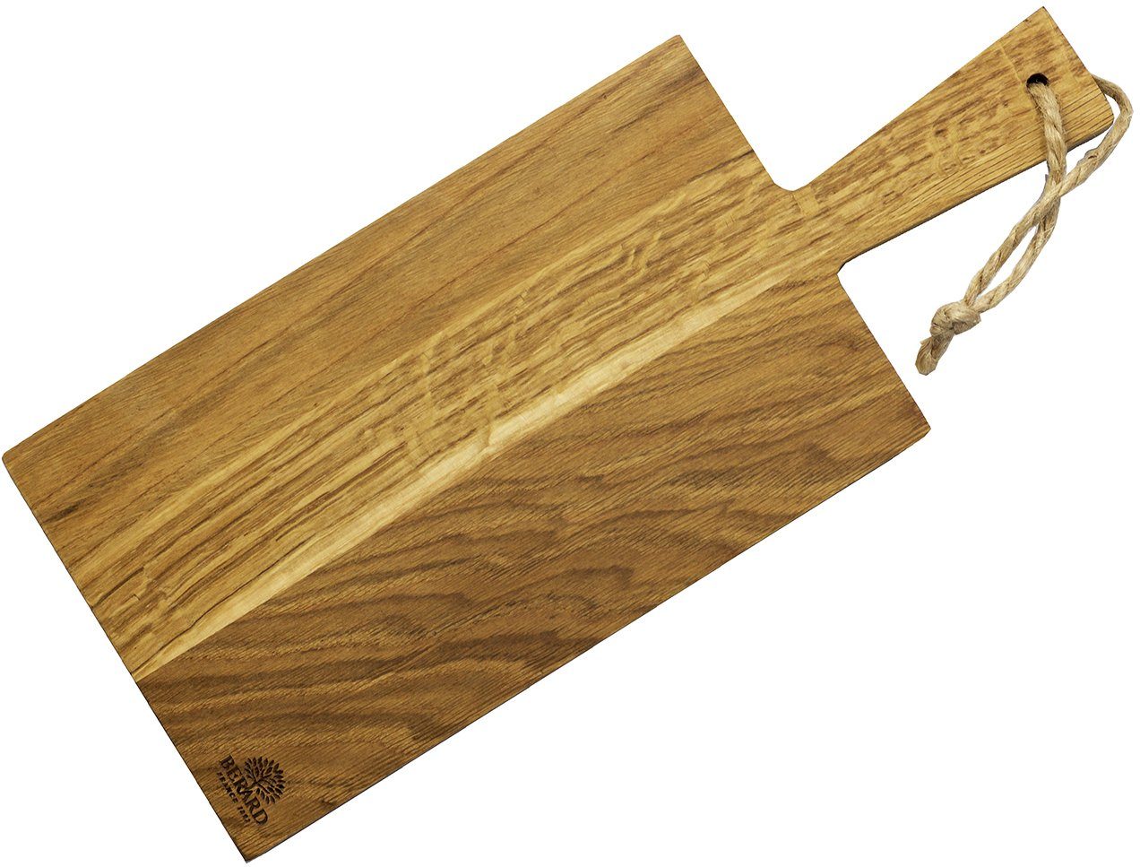 Die rustikalen Schneidbretter von Bérard im skandinavischen Design sind ideal zum Schneiden, Zubereiten und Präsentieren. Die markanten, gradlinigen Schneidbreiter aus Eichenholz sind besonders hochwertig, widerstandsfähig und gut zur Klinge. Die Eichenholz-Schneidbretter verleihen jedem Tisch ein natürliches, authentisches Aussehen. Sie sind ein Hingucker beim Servieren von Tapas, Käse und anderen Köstlichkeiten. Die markanten Schneidbretter haben einen praktischen Griff mit Aufhängeöse. Wie alle verarbeiteten Hölzer von Bérard stammt auch das Eichenholz aus zertifizierter Forstwirtschaft und ausschließlich aus zertifizierten Nutzwäldern.
