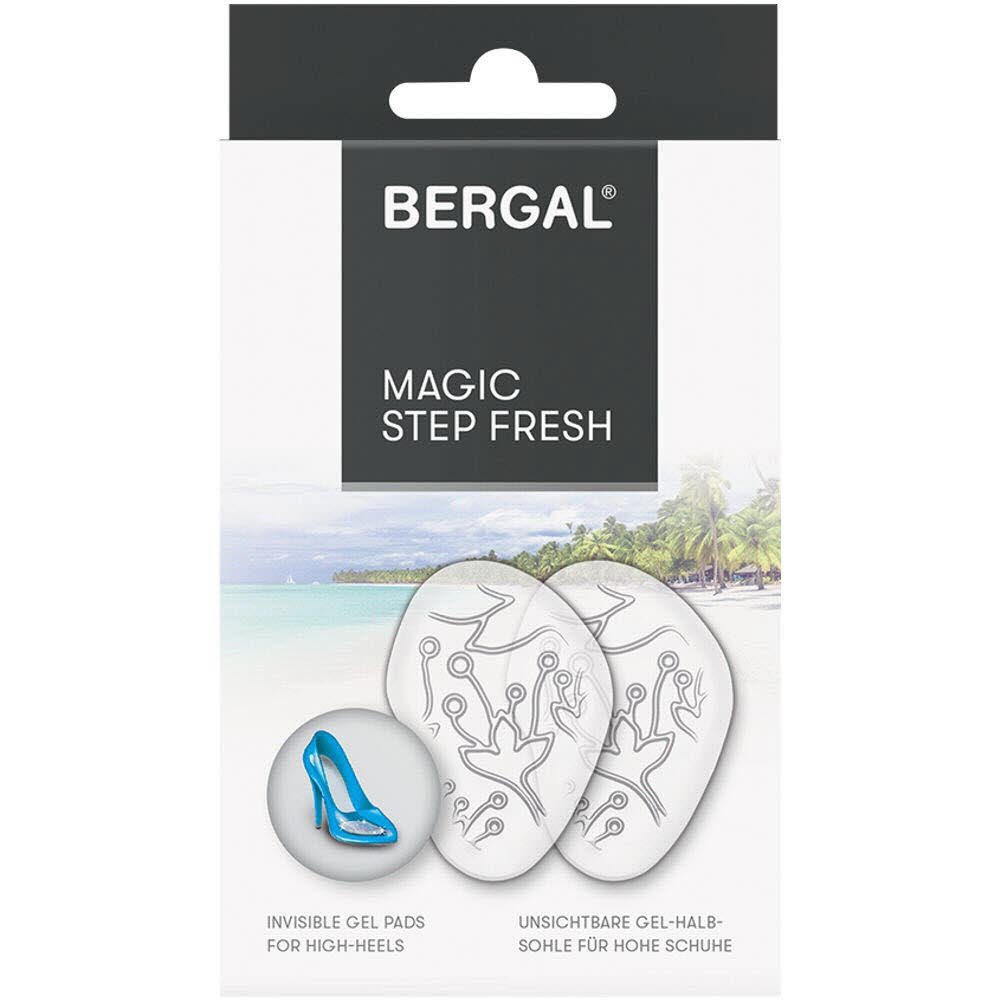 Die Magic Step Fresh ist eine transparente Gel-Halbsohle aus PU-Gel für Damen von Bergal. Die Einlegesohle sorgt für sehr guten Halt im Schuh, verhindert ein Vorrutschen und Brennen der Füße beim langen Stehen. Der blumige Frische-Duft hinterlässt einen angenehmen Duft. Die Sohle trägt kaum auf und ist damit für alle Schuh-Typen, besonders für hohe Schuhe, geeignet.