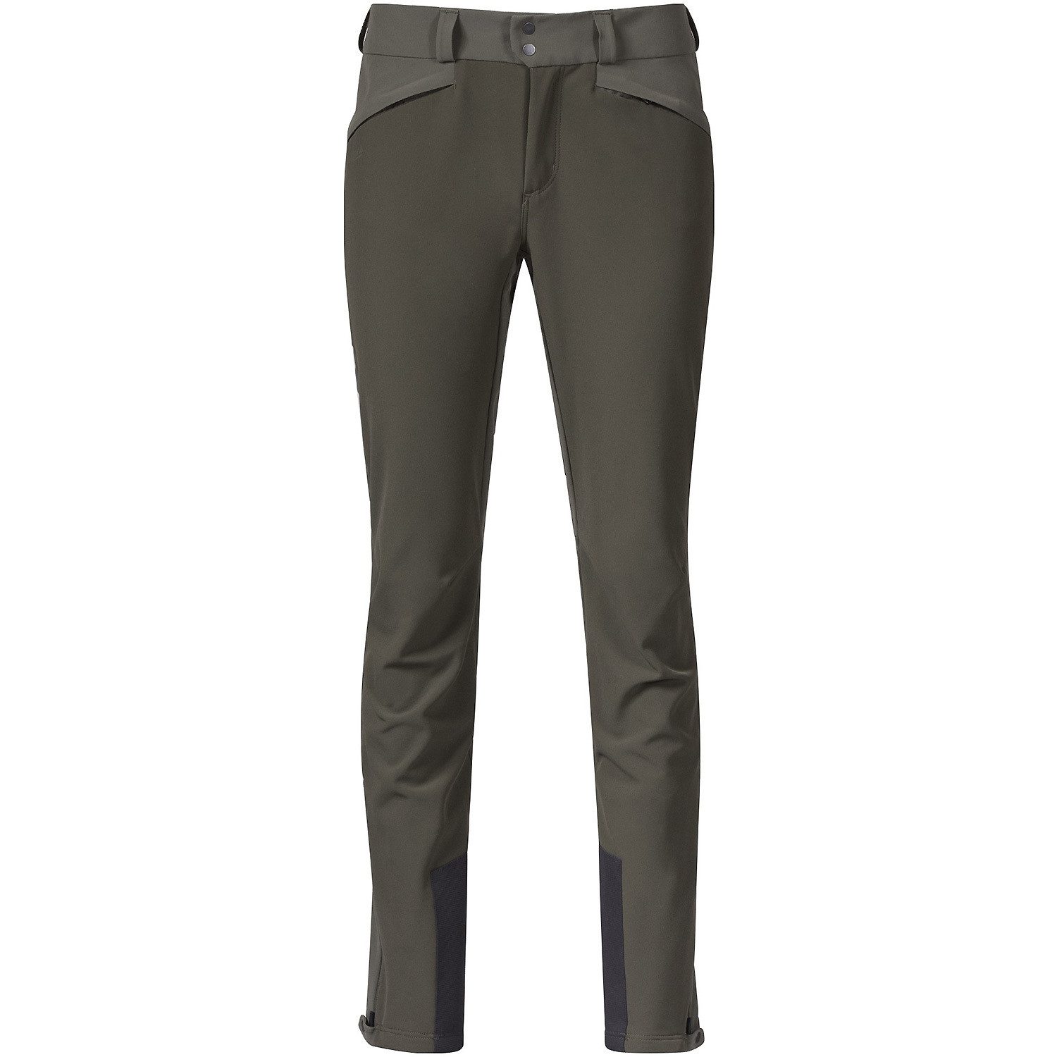 Die Hose zeichnet sich durch die Verwendung zweier unterschiedlicher Softshell-Materialien aus, die beide wasserabweisend und sehr flexibel sind. Verstärkungen an den Knöchelinnenseiten sorgen für einen längeren Erhalt der Hose und machen sie widerstandsfähiger gegen Abnutzungen durch Wander- und Skischuhe.