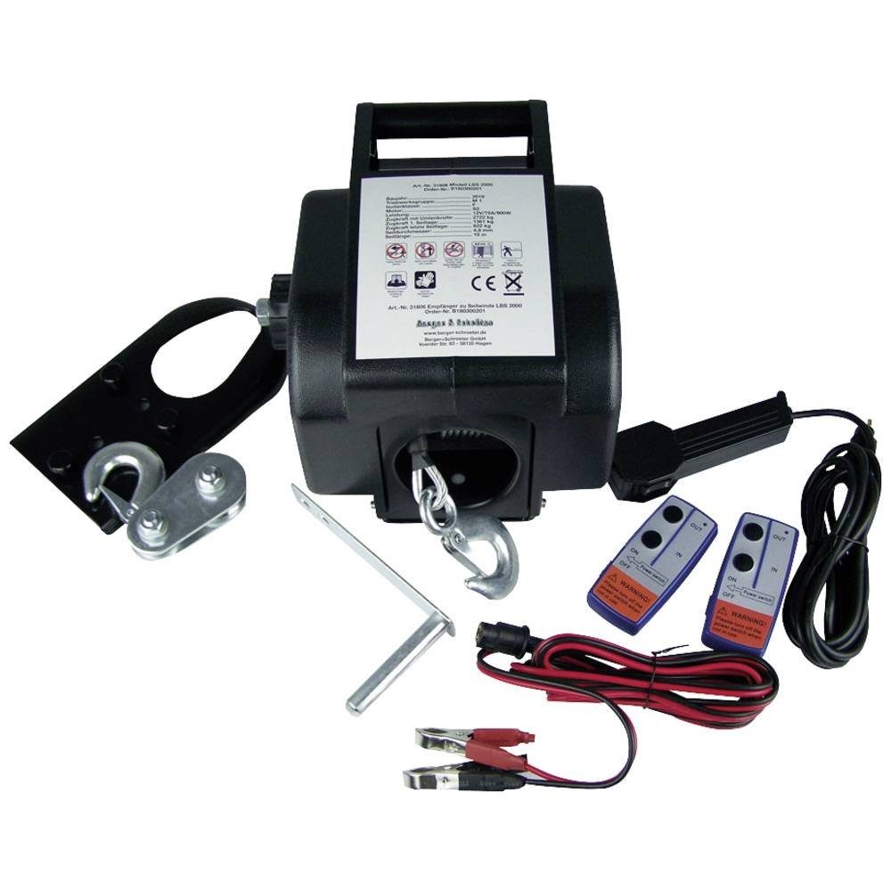 Eigenschaften | Ausführung (allgemein): 12 V PKW-Seilwinde mit 2x Funkfernbedienung · Befestigungsart (im Auto): Einhängen an die Anhängerkupplung · Betriebsspannung: 12 V · Gewicht: 9500 g · Produktabmessung, Breite: 210 mm · Produktabmessung, Höhe: 229 mm · Produktabmessung, Tiefe: 172 mm · Seil-Длина: 10 m · Seil-Ø: 4.8 mm · Seilwinden-Besonderheiten: Funk-Fernbedienung, Kabel-Fernbedienung · Впередe technische Daten: Motor: S2 Isolierklasse: F Triebwerksgruppe: M1 Bremse: Zahnradsperre · Zugkraft (rollend): 1361 kg · Zugkraft (stehend): 622 kg |