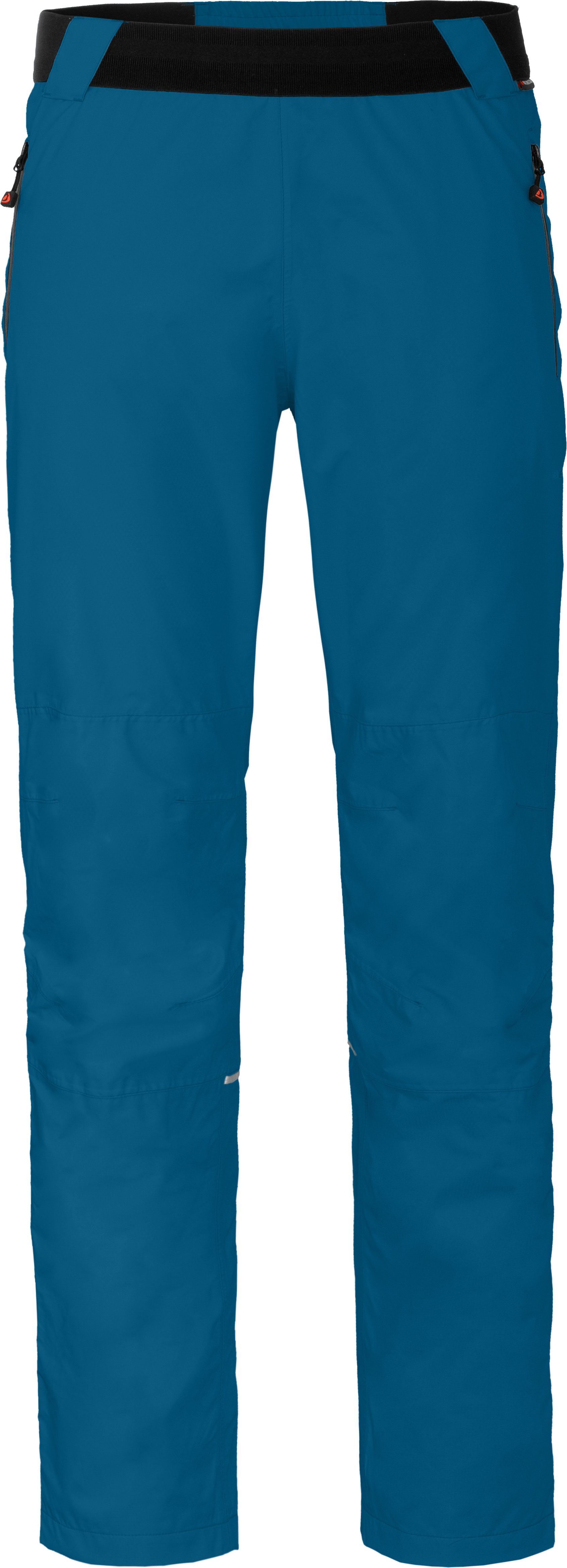 Praktische Herren Regenhose, Überhose mit neu entwickeltem, sehr elastischen Komfort-Bund. Dank der Supratex 12.000 Membrane ist sie winddicht und wasserdicht sowie sehr atmungsaktiv. Der seitliche, abgedeckte Reißverschluss geht bis zum Knie und erleichtert das An- und Ausziehen der Hose mit Schuhen. Vorgeformte Knie und verstellbarer Beinsaum sind praktische Details. Besonders als Überhose bei Regen bestens geeignet.