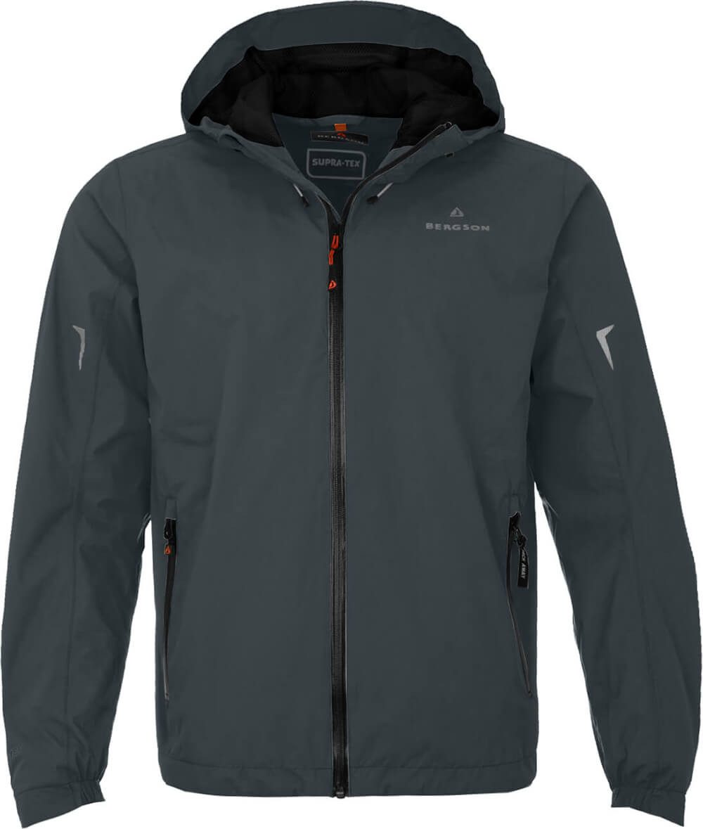 Praktische Herren Regenjacke für alle Tage und fast jede Wetterlage. Mit dieser tollen Funktionjacke bleibt man immer trocken. Die Supratex 12.000 Membrane macht die Jacke absolut winddicht und wasserdicht sowie atmungsaktiv. Damit übersteht man jeden Schauer unbeschadet. Die helmtaugliche Kapuze ist ein praktisches Detail, um auch auf dem Rad trocken zu bleiben. Die sichtbaren, wasserdichten Reißverschlüsse geben dem Allrounder eine sportliche Note.